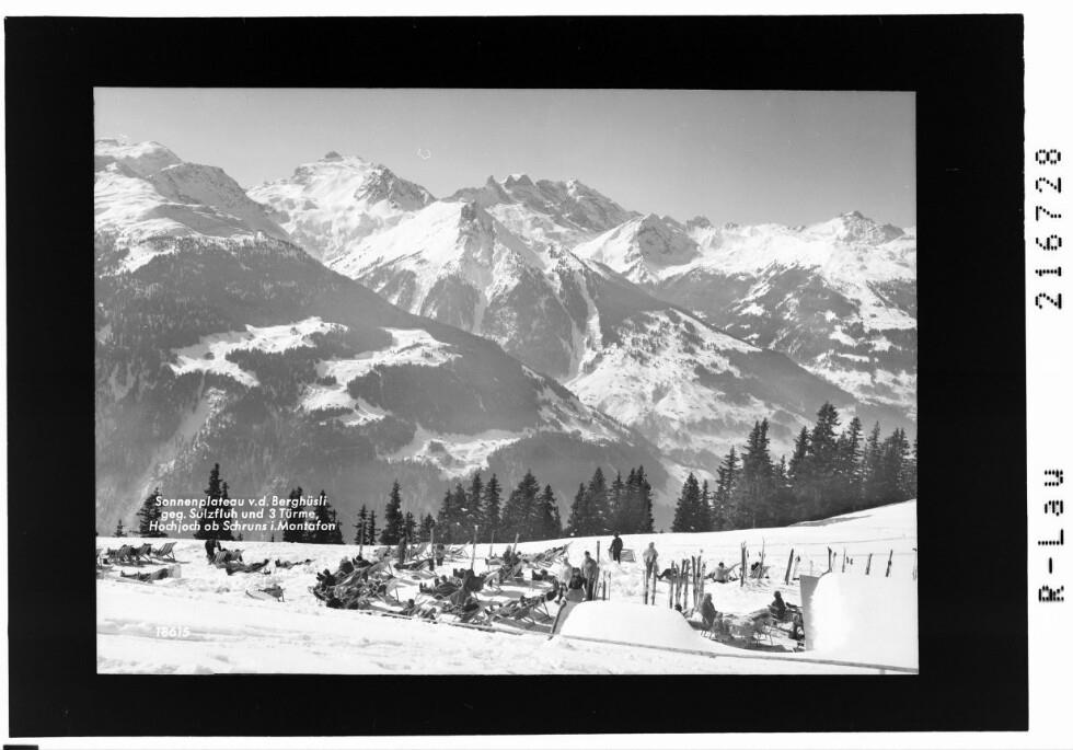 Sonneplateau vor dem Berhüsli gegen Sulzfluh und 3 Türme, Hochjoch ob Schruns im Montafon