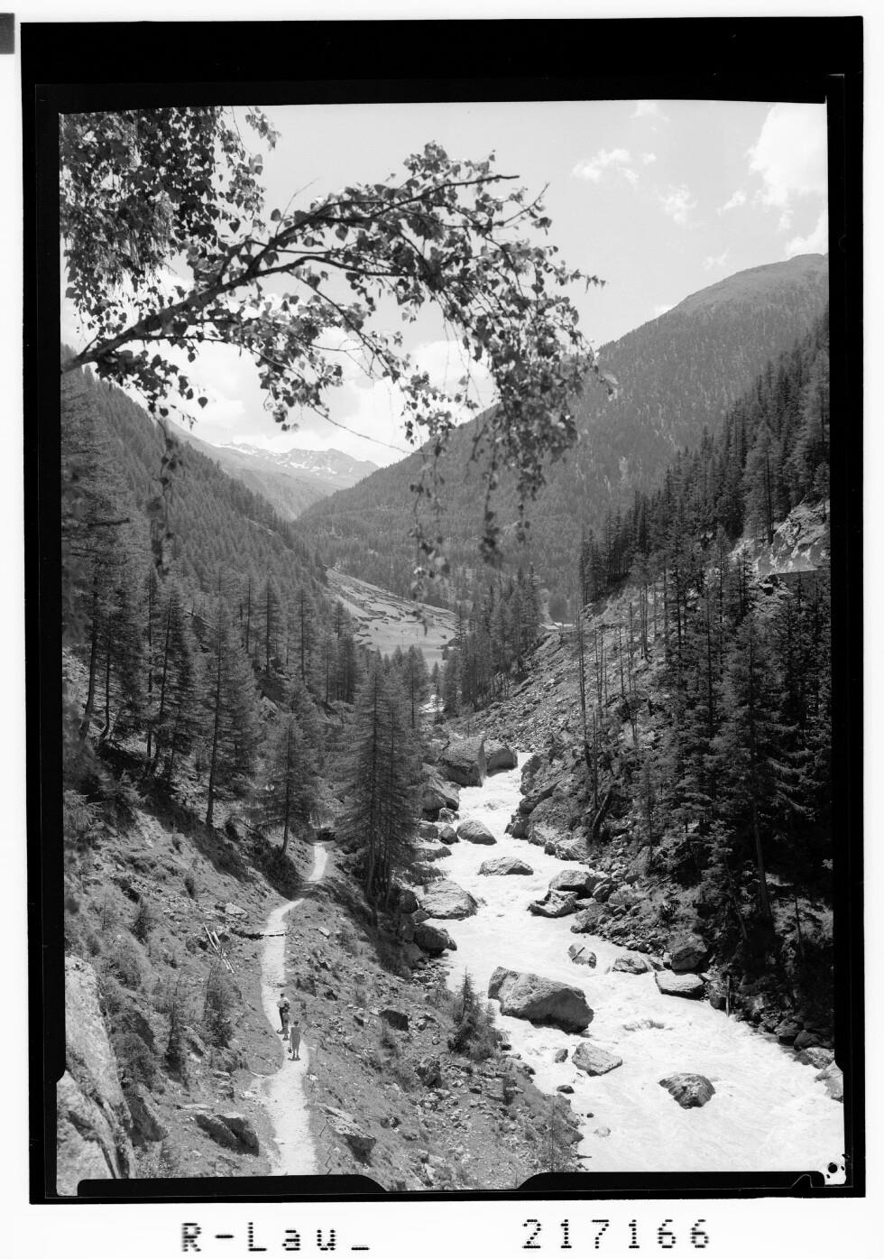 [Weg durch die Kühtreienschlucht zwischen Sölden und Zwieselstein im Ötztal mit Blick zum Gurglerkamm / Tirol]