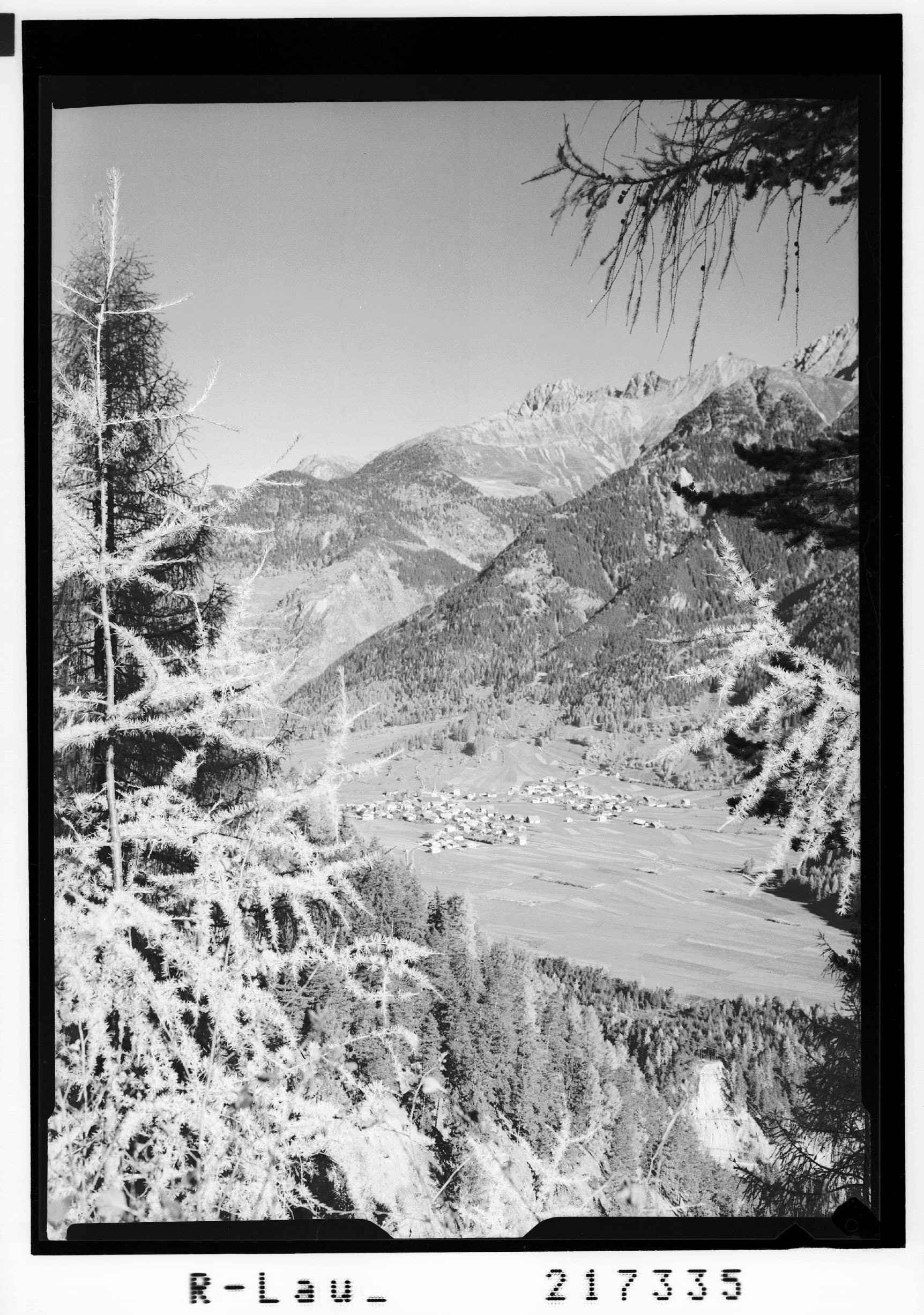 [Blick auf Umhausen im Ötztal mit Acherkogel und Hochbrunnachkogel / Tirol]