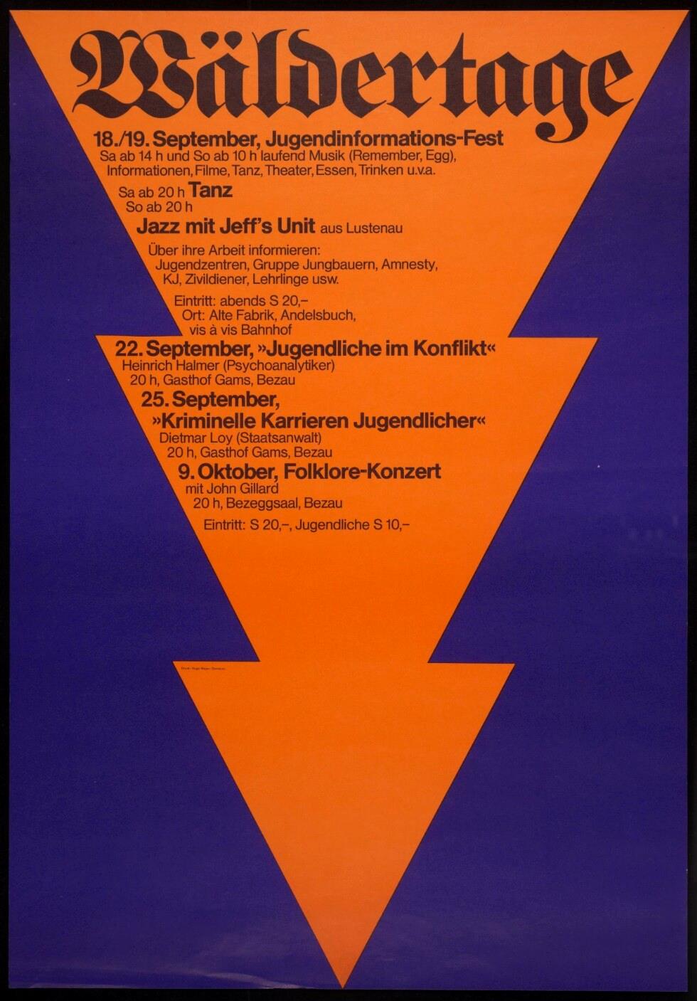 18./19. September: Jugendinformations-Fest, 22. September: "Jugendliche im Konflikt", 25. September: "Kriminelle Karrieren Jugendlicher", 9. Oktober: Folklore-Konzert