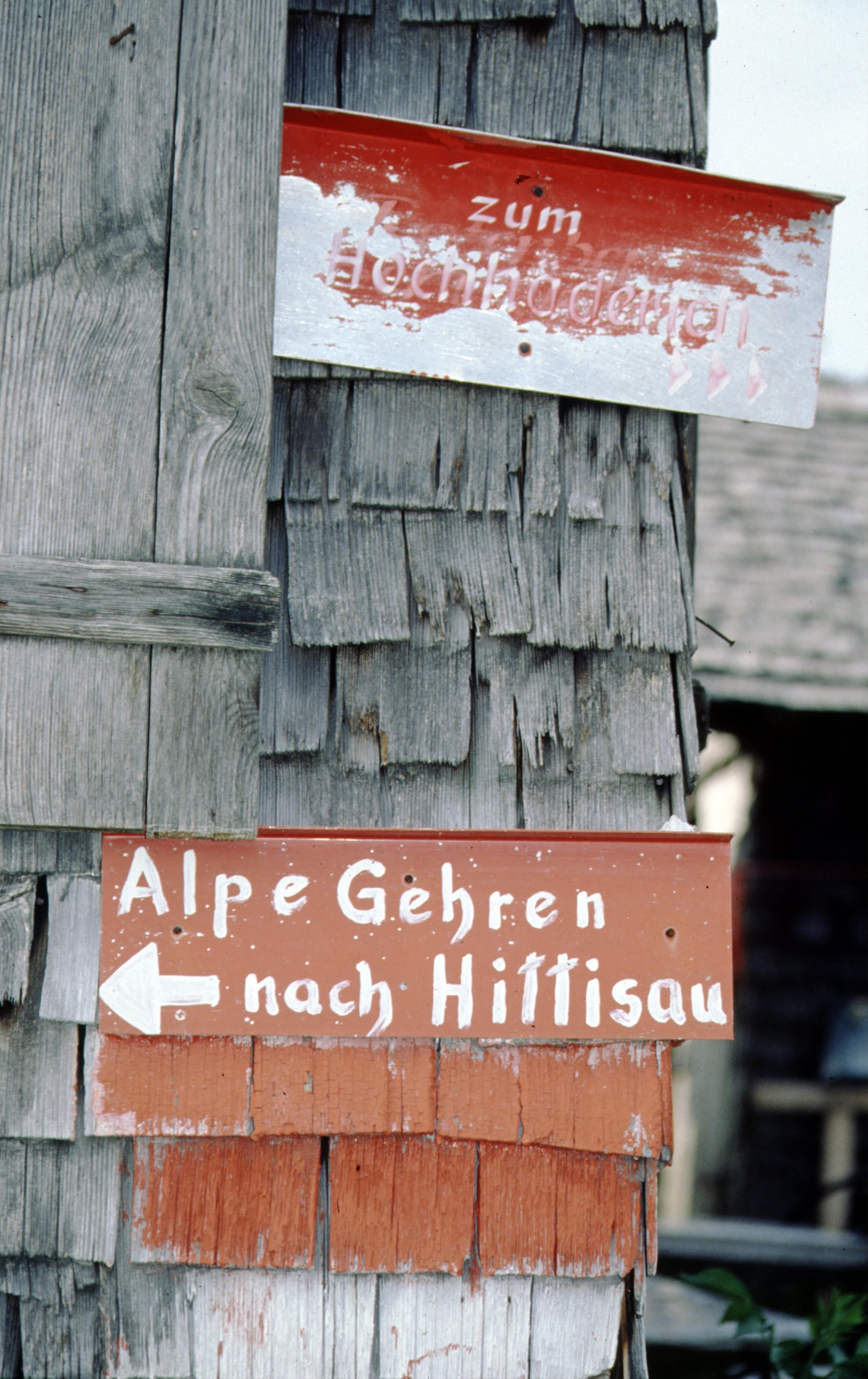 [Hittisau, alter Wegweiser auf Alpe Gehren]