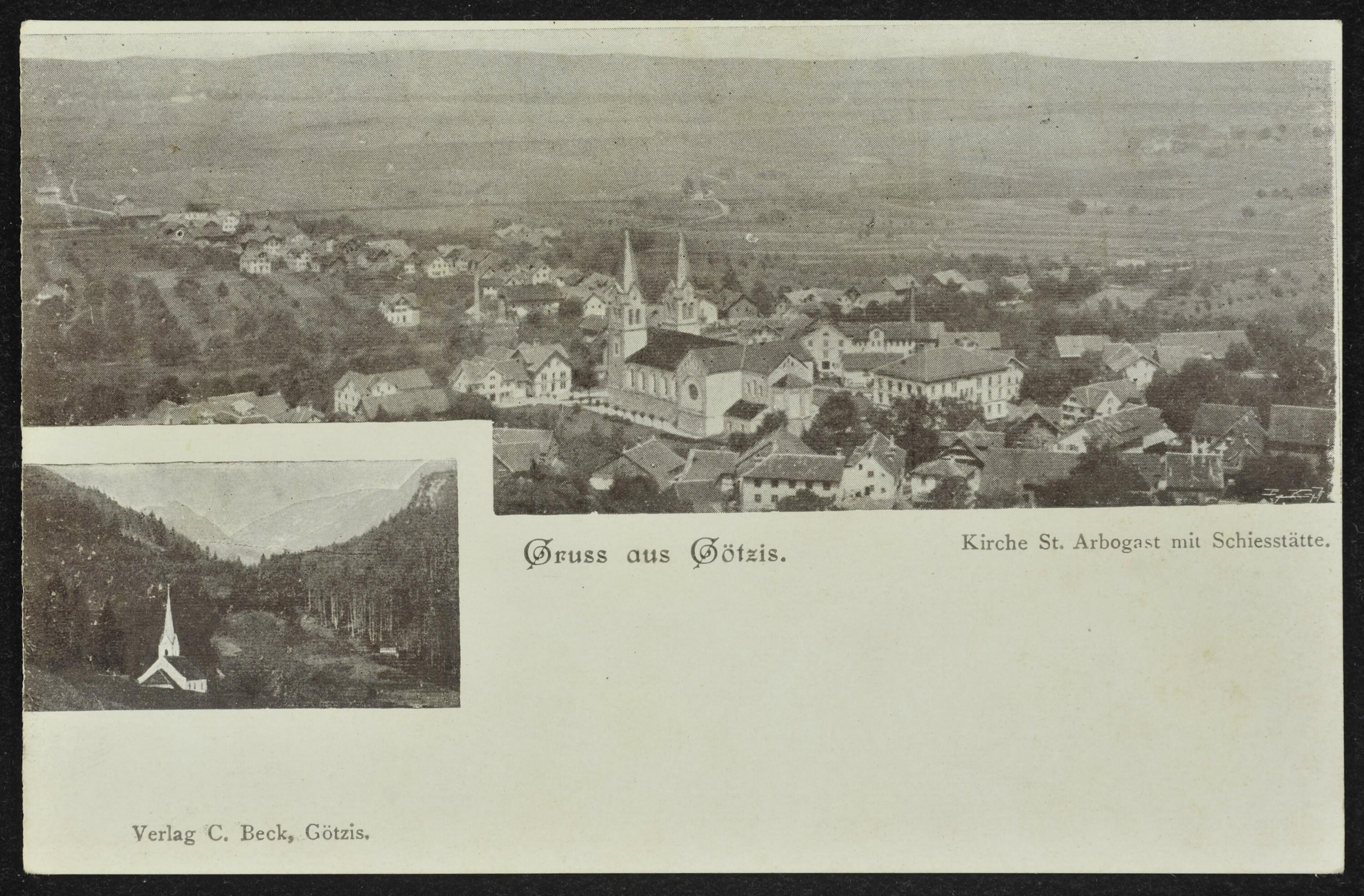 Gruss aus Götzis, Kirche St. Arbogast mit Schiesstätte
