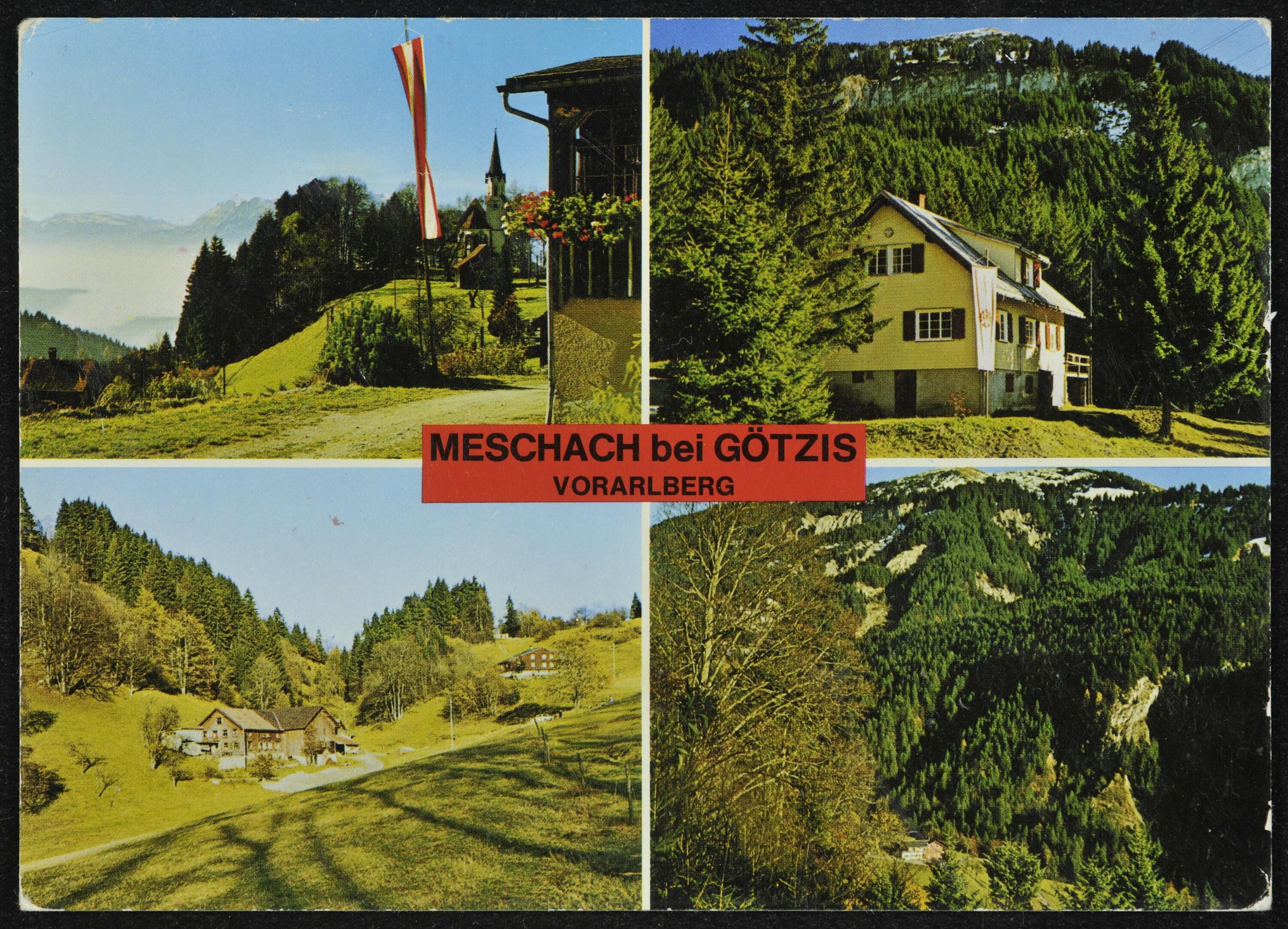 Meschach-Götzis, Vorarlberg : Kirche und Pfarrhaus, Meschach mit hoher Kugel, Gasthaus v. A. Kathan