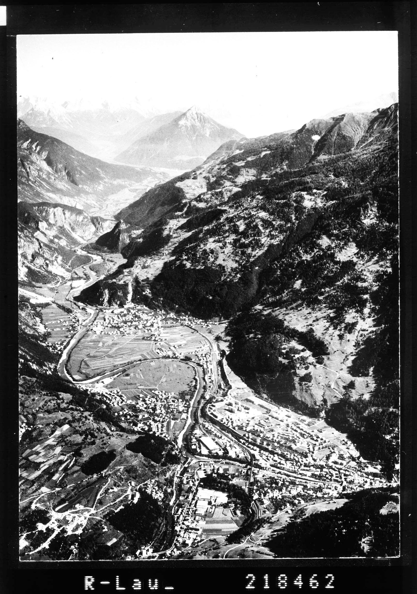 [Landeck und Zams gegen Zugspitze - Mieminger Gebirge - Karwendelgebirge - Pirchkogel - Venetberg]