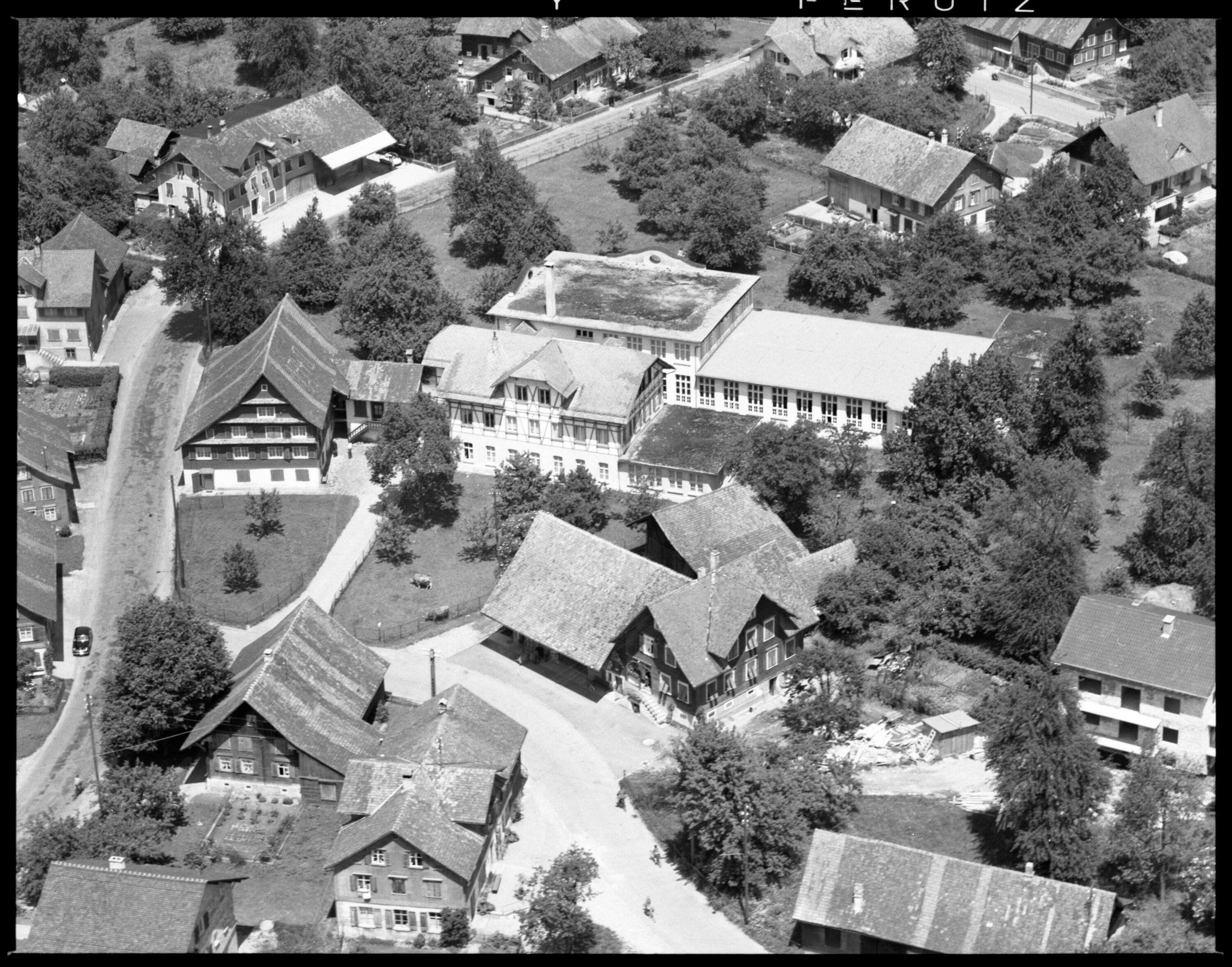 1 Schrägluftbild negativ, schwarz-weiß, quer, 7 x 5 cm