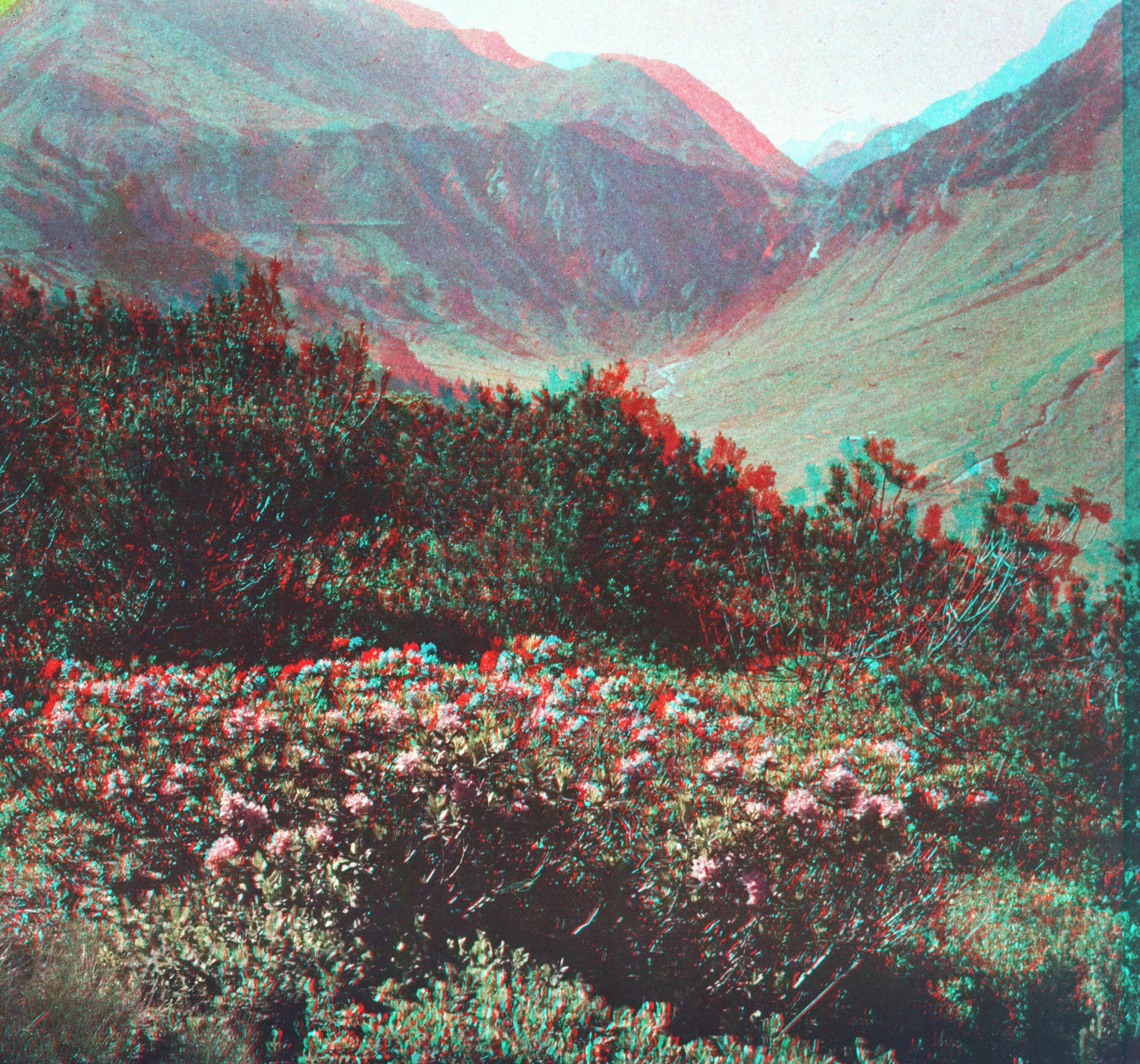 1 Stereoskopie auf Glasplatte (Positiv), farbig, quer, 6 x 13 cm