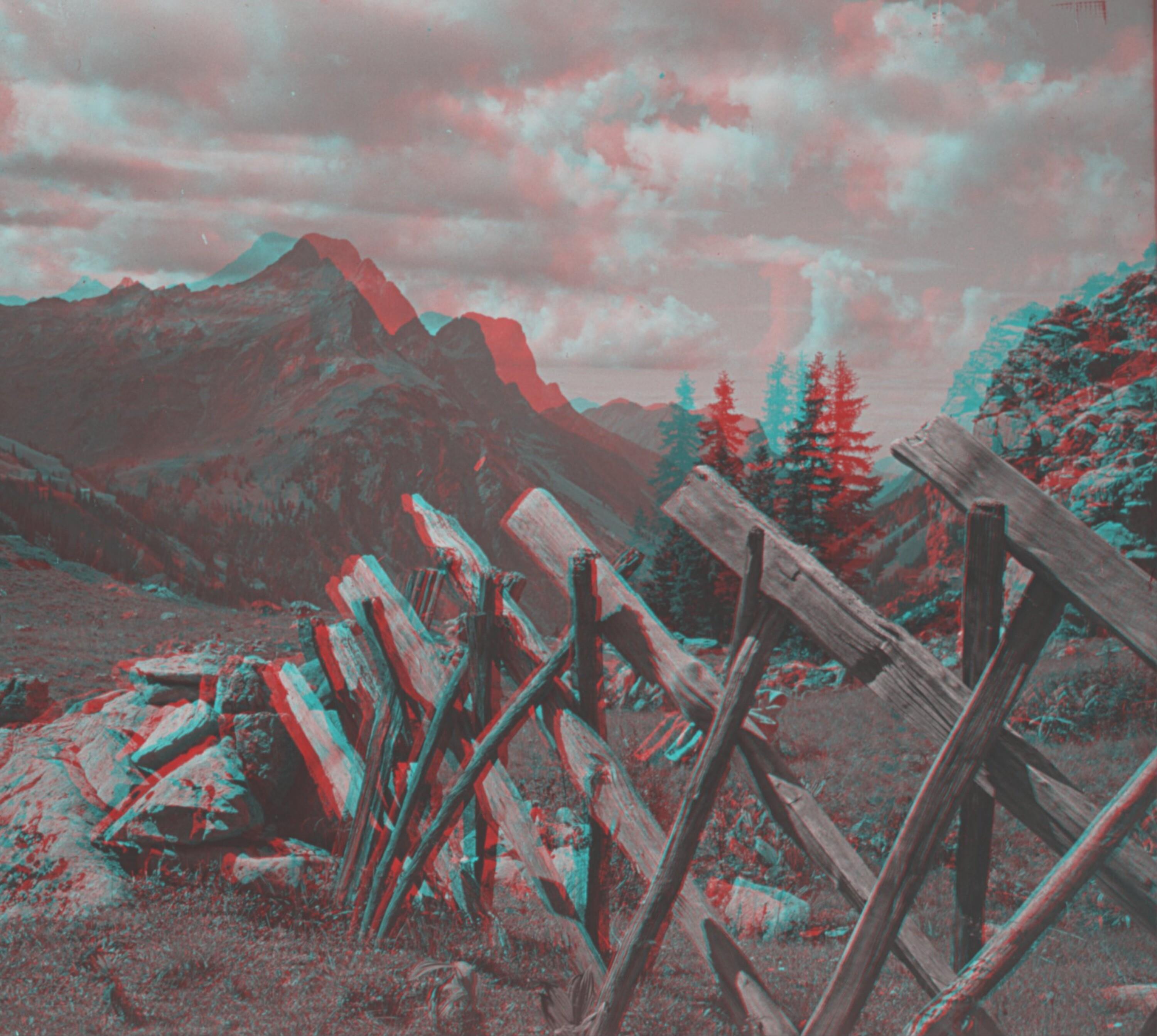 (1 Stereoskopie auf Glasplatte (Positiv), schwarz-weiß, quer, 6 x 13 cm)