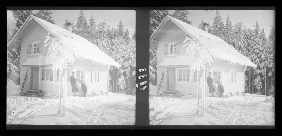 1 Stereoskopie auf Glasplatte (Positiv), schwarz-weiß, quer, 6 x 13 cm