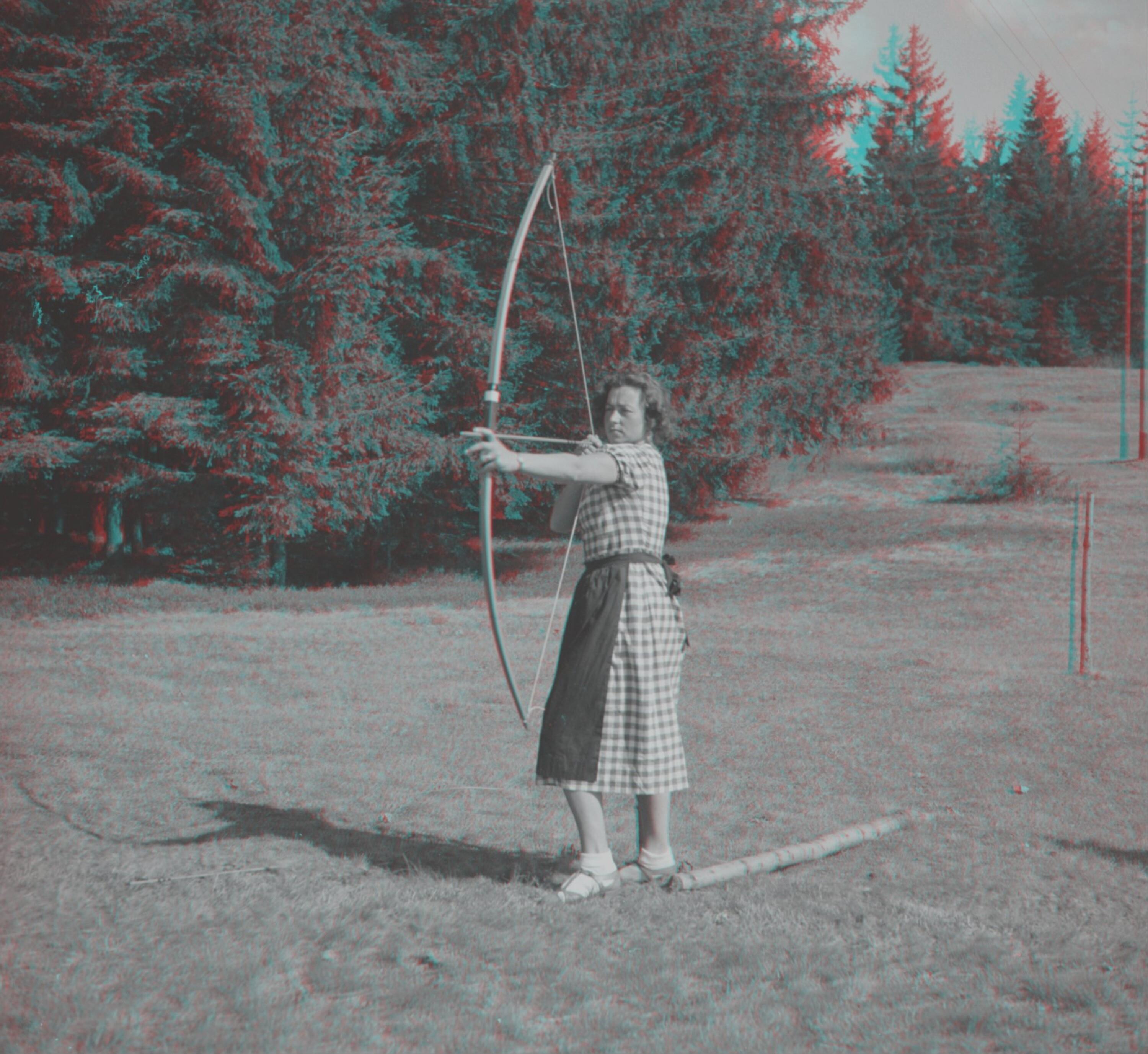 • Lore Bertolini beim Bogenschießen am Bödele