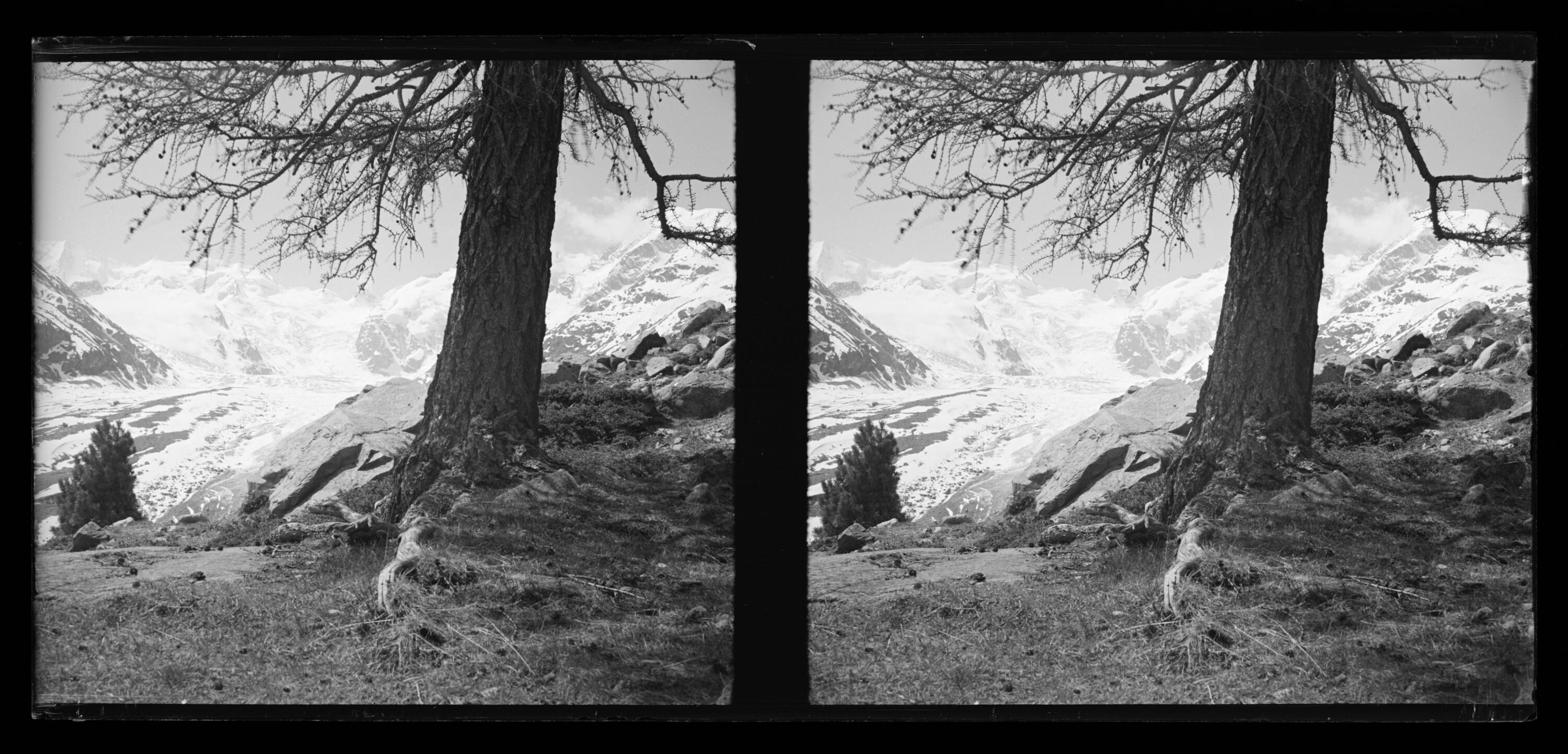 1 Stereoskopie auf Glasplatte (Negativ), schwarz-weiß, quer, 6 x 13 cm