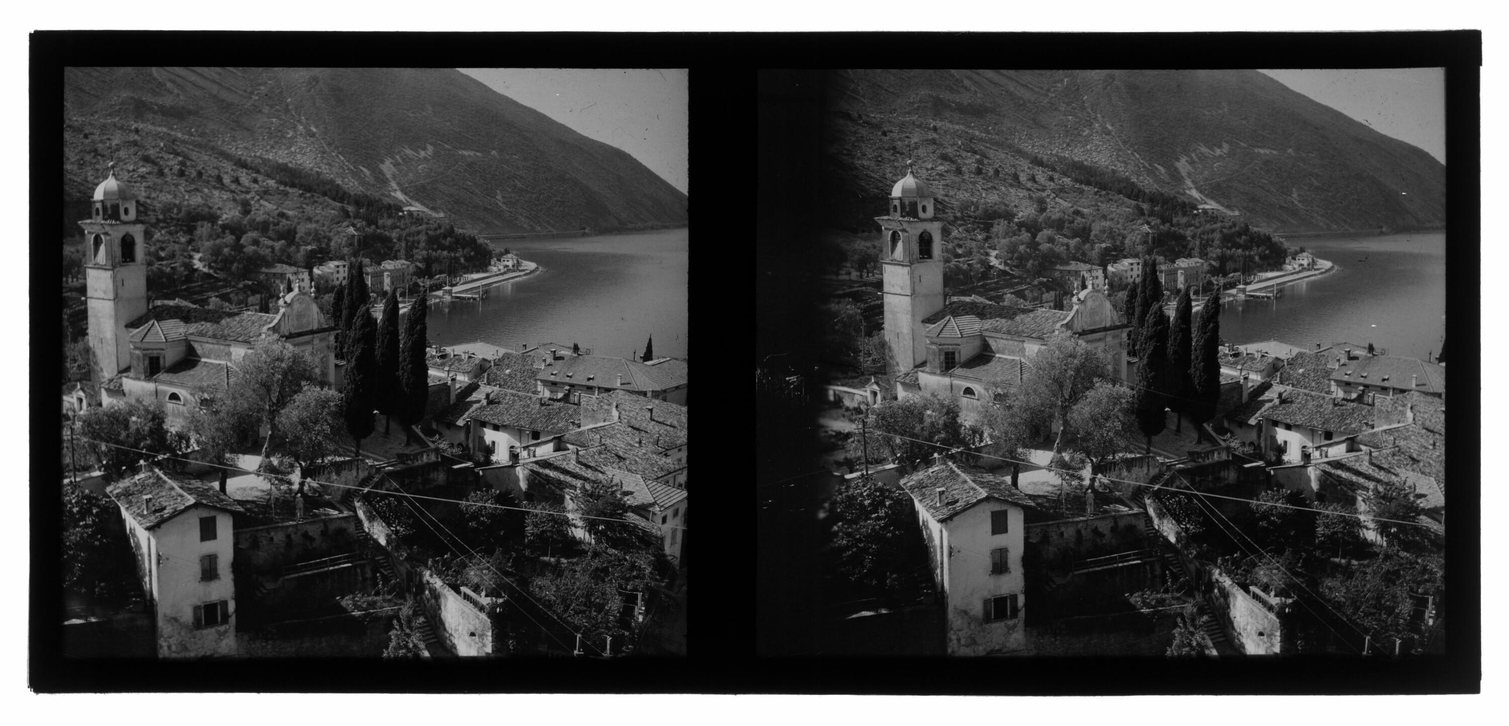 1 Stereoskopien auf Glasplatte (Negativ), schwarz-weiß, quer, 6 x 13 cm