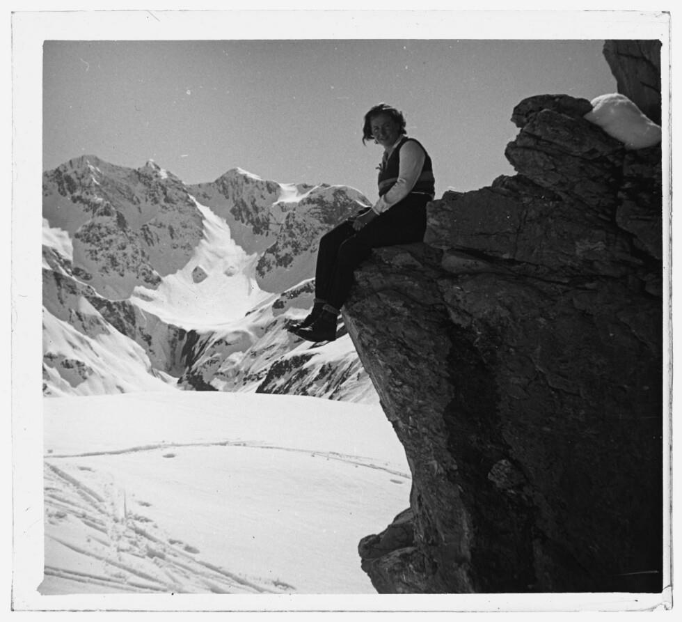 • Lore Bertolini auf einem Felsen beim Körbersee sitzend