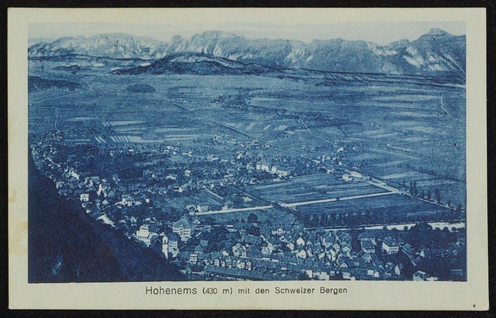 Hohenems (430 m) mit den Schweizer Bergen></div>