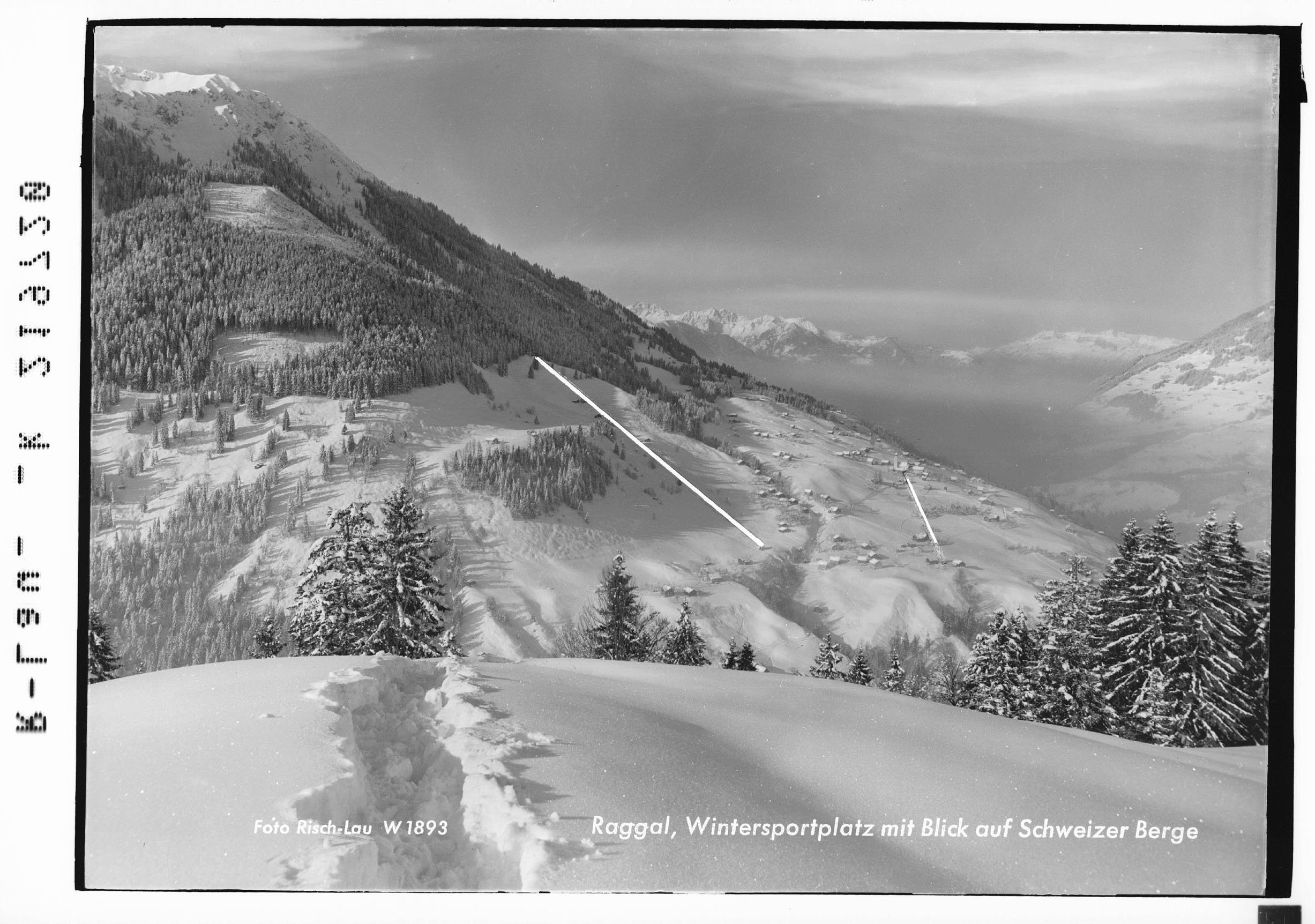Raggal / Wintersportplatz mit Blick auf Schweizer Berge