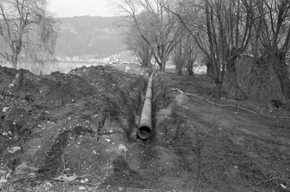 Bau der Pipeline am Bodenseeufer
