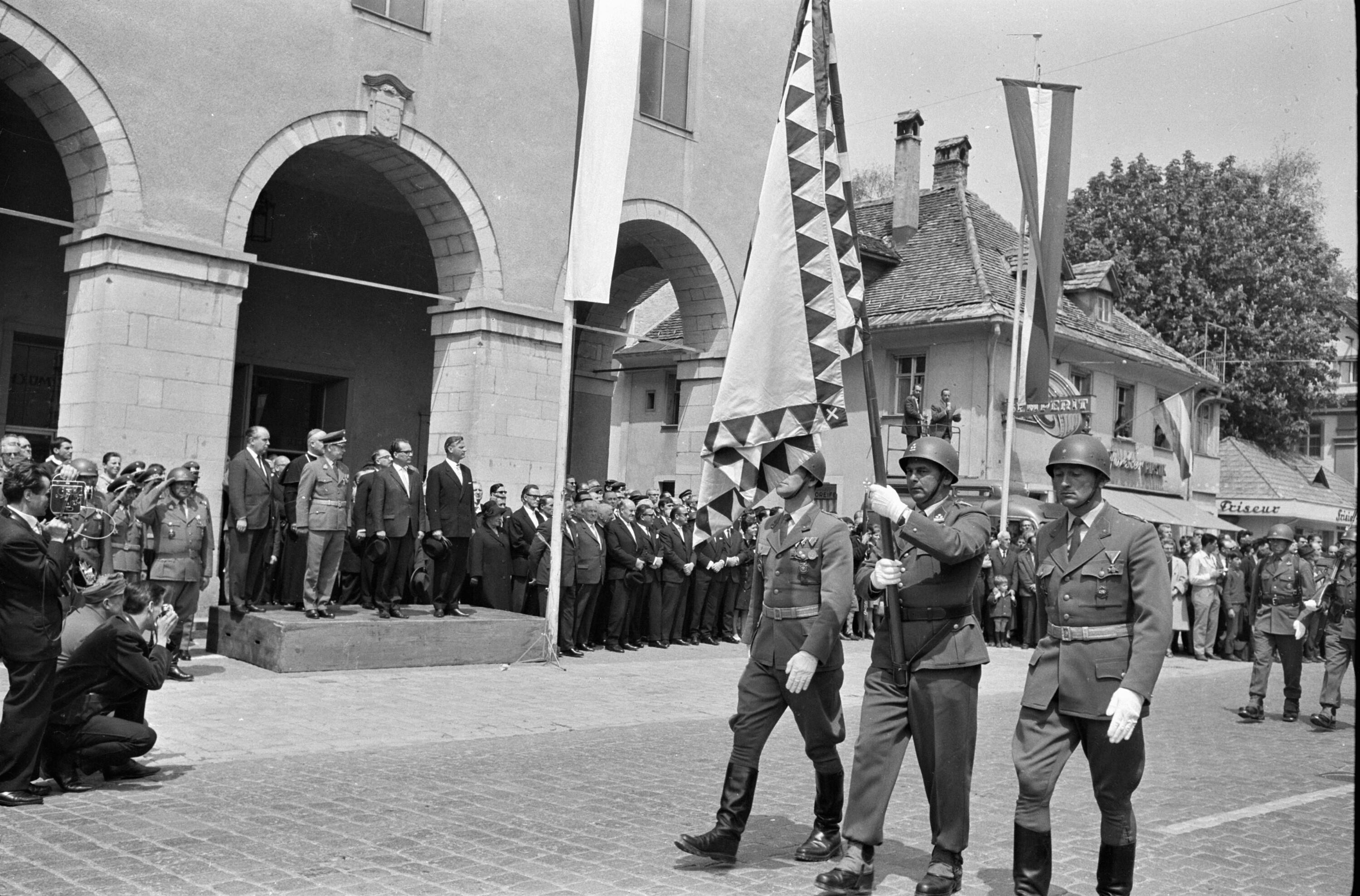 [Bregenz Kornmarktplatz, Gedenktafelenthüllung des Regiments Rainer]