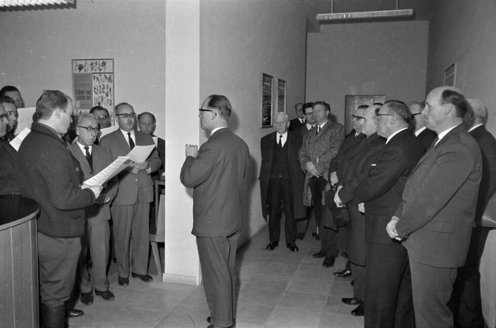 • o:249255: hintere Reihe: unbekannt, unbekannt, unbekannt, Generalsekretär Pridun, Generaldirektor Ammann, Josef Klaus, Direktor Wirnschimmel, Herbert Kessler, unbekannt, unbekannt