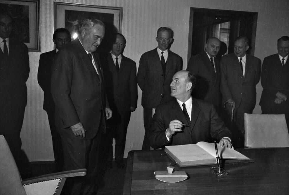 • o:249255: hintere Reihe: unbekannt, unbekannt, unbekannt, Generalsekretär Pridun, Generaldirektor Ammann, Josef Klaus, Direktor Wirnschimmel, Herbert Kessler, unbekannt, unbekannt