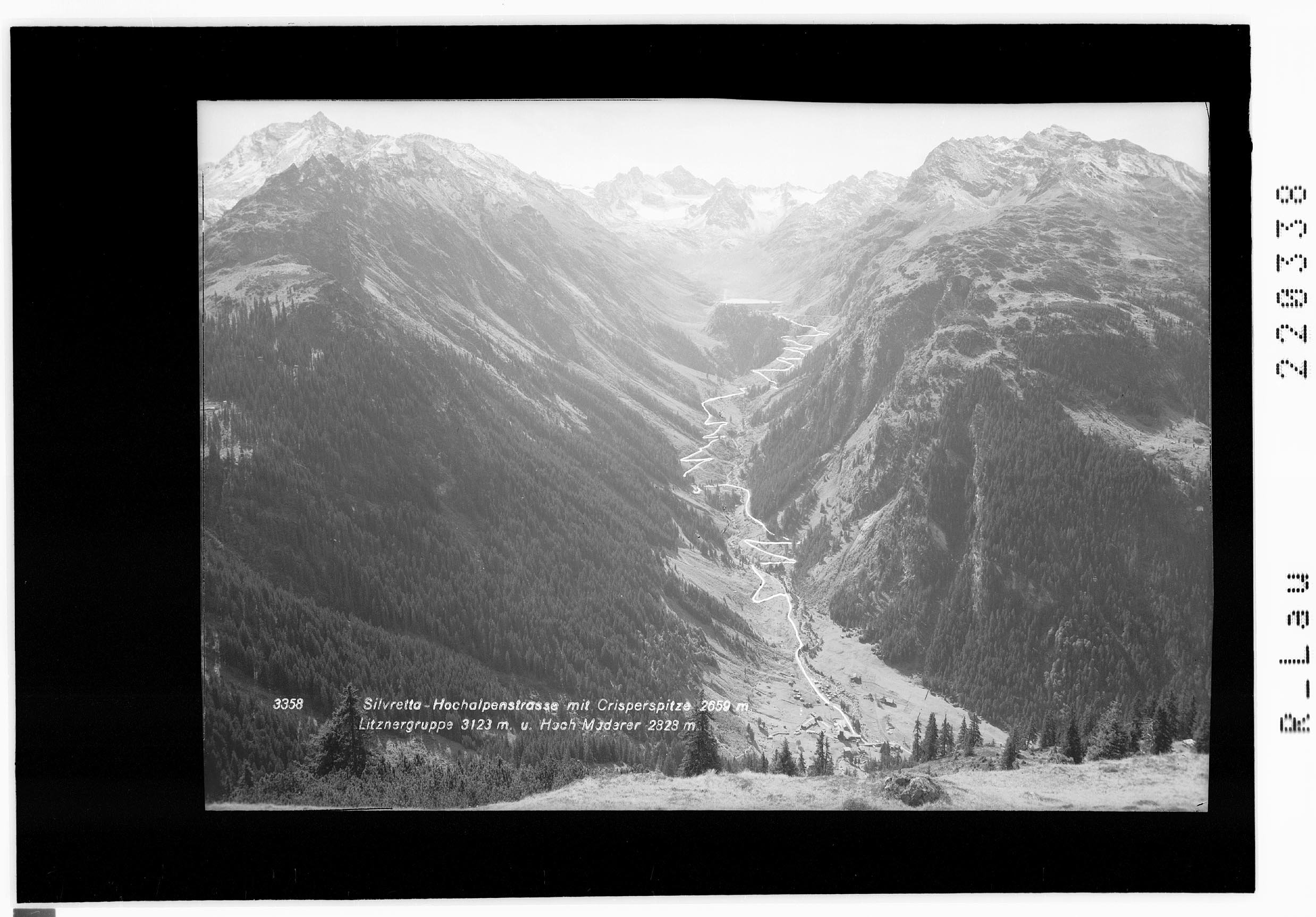 Silvretta Hochalpenstrasse mit Crisperspitze 2659 m und Litznergruppe 3123 m
