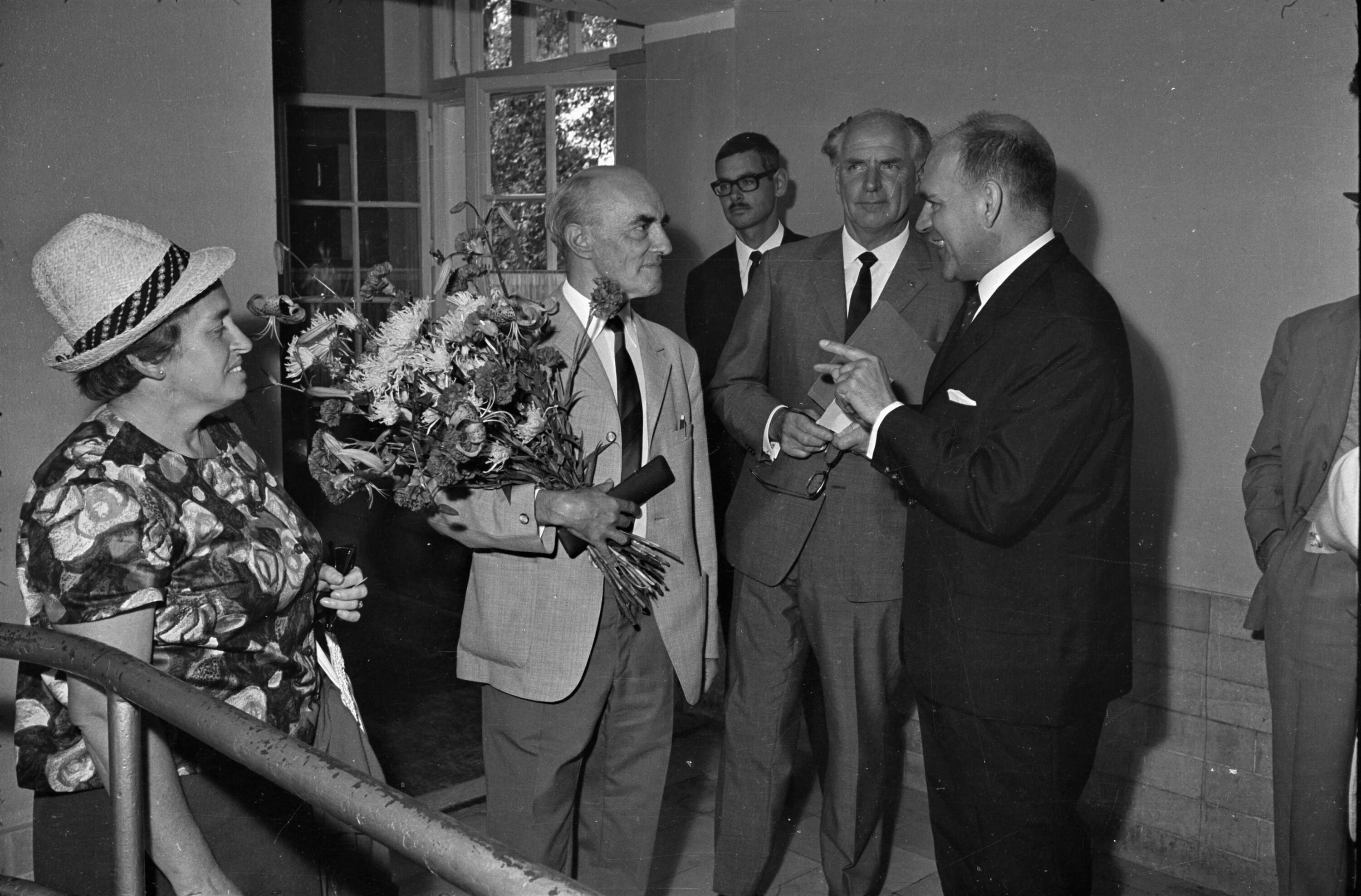 o:252987: v.l.n.r.: Ing. Fink, Bürgermeister Karl Tizian, Bregenzerin in Tracht, Ehepaar Wehinger, Hubert Kinz, Bregenzer in Tracht