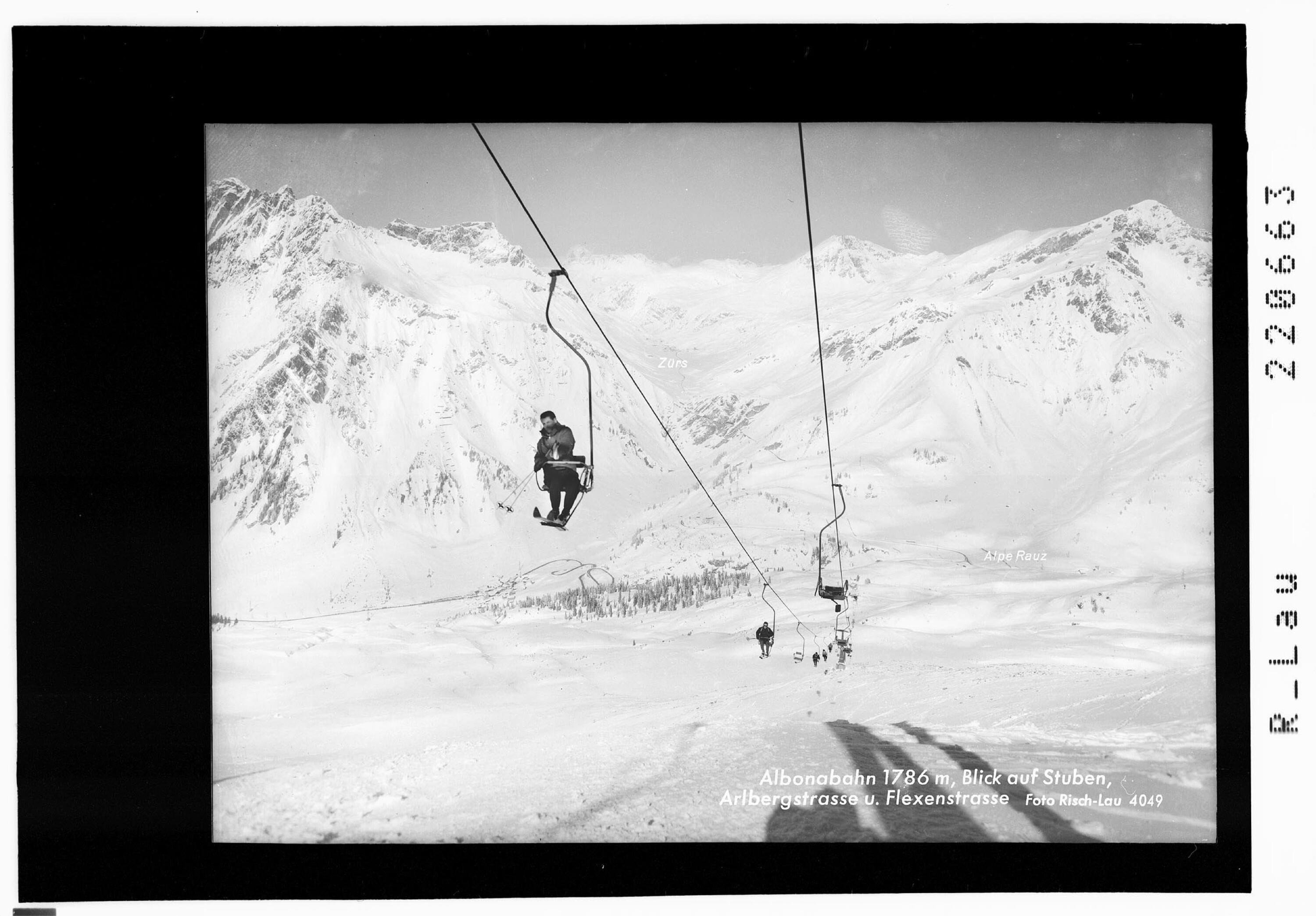 Albonabahn 1786 m / Blick auf Stuben - Arlbergstrasse und Flexenstrasse