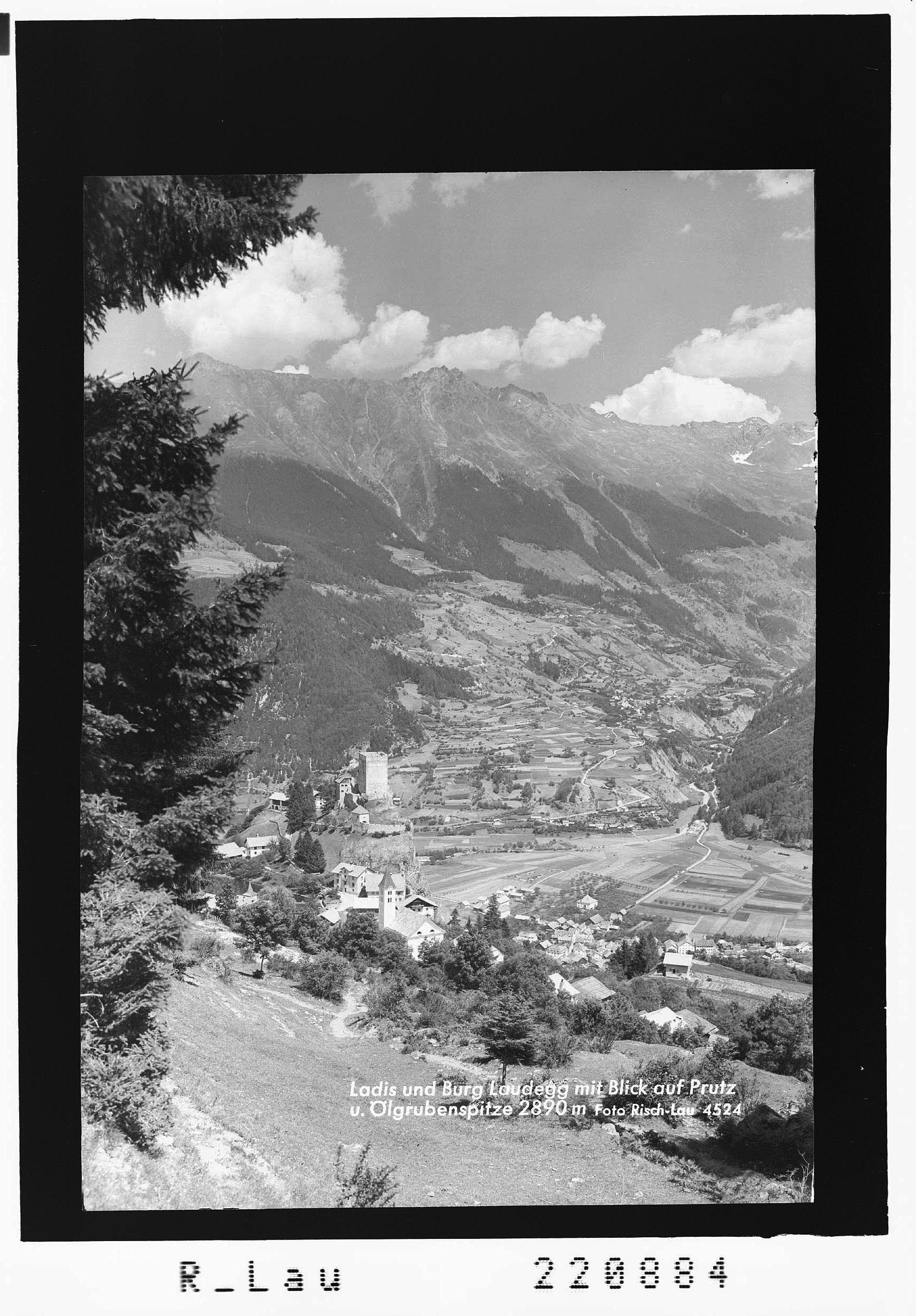 Ladis und Burg Laudegg mit Blick auf Prutz und Ölgrubenspitze 2890 m