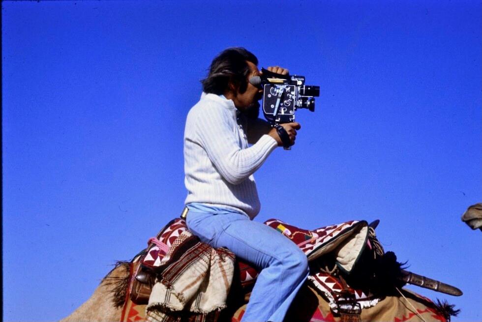 : Werner Fend bei Filmaufnahmen auf Kamel