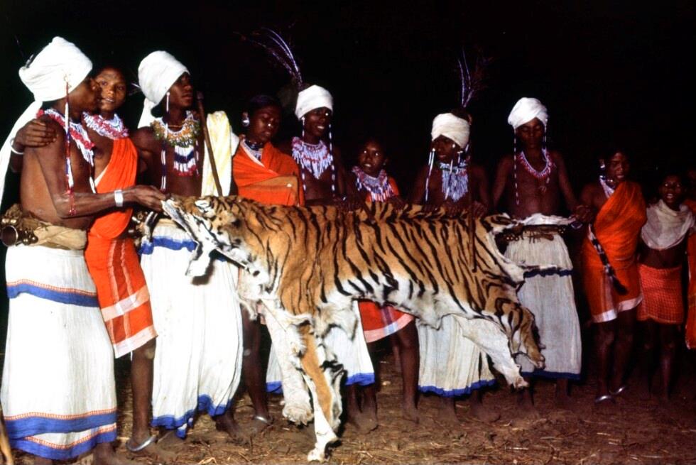 • o:262832: Werner Fend mit Einheimischen vor Tigerfell