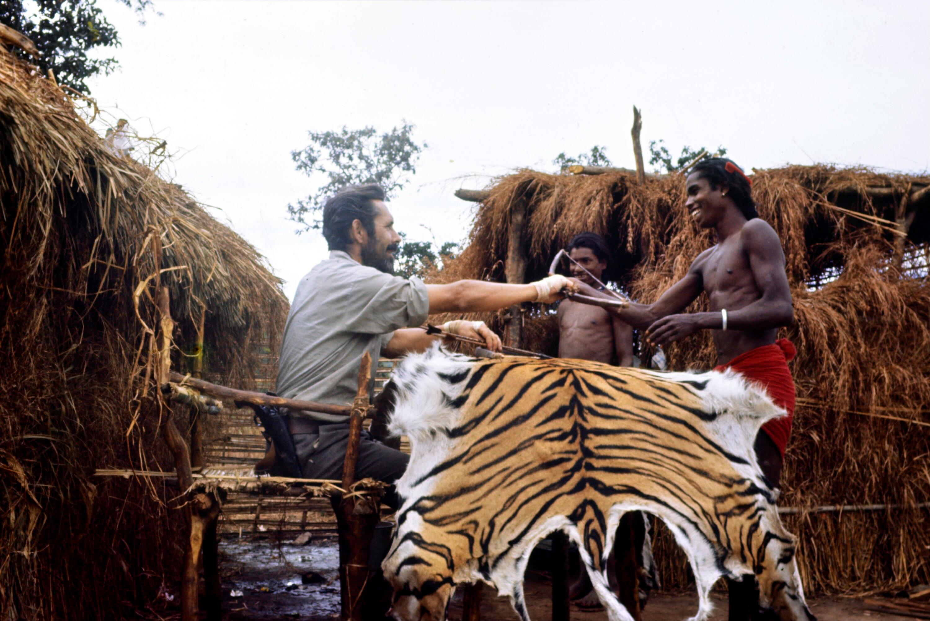 • o:262832: Werner Fend mit Einheimischen vor Tigerfell