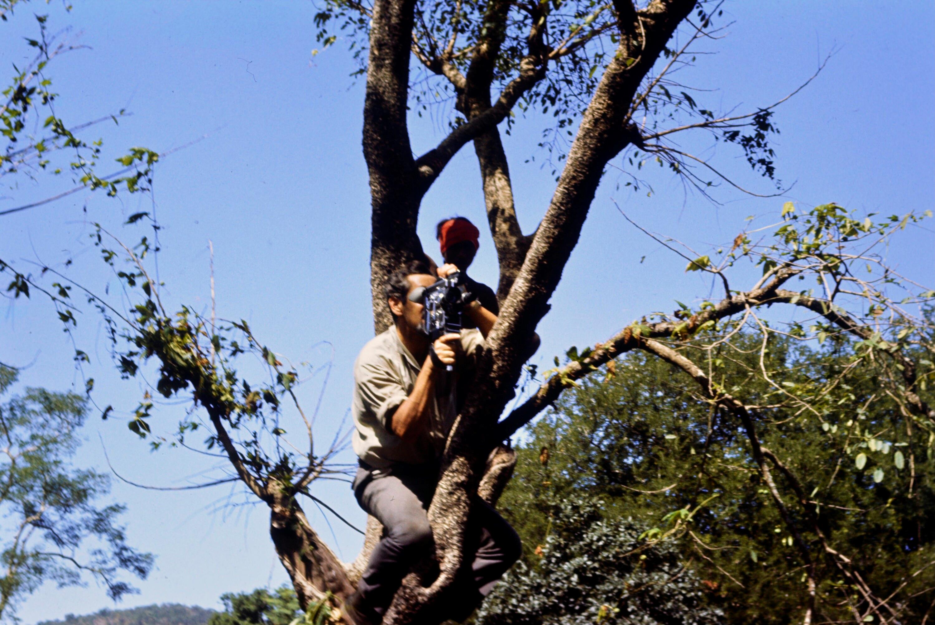 • o:263263: Werner Fend bei Filmaufnahmen vom Baum aus