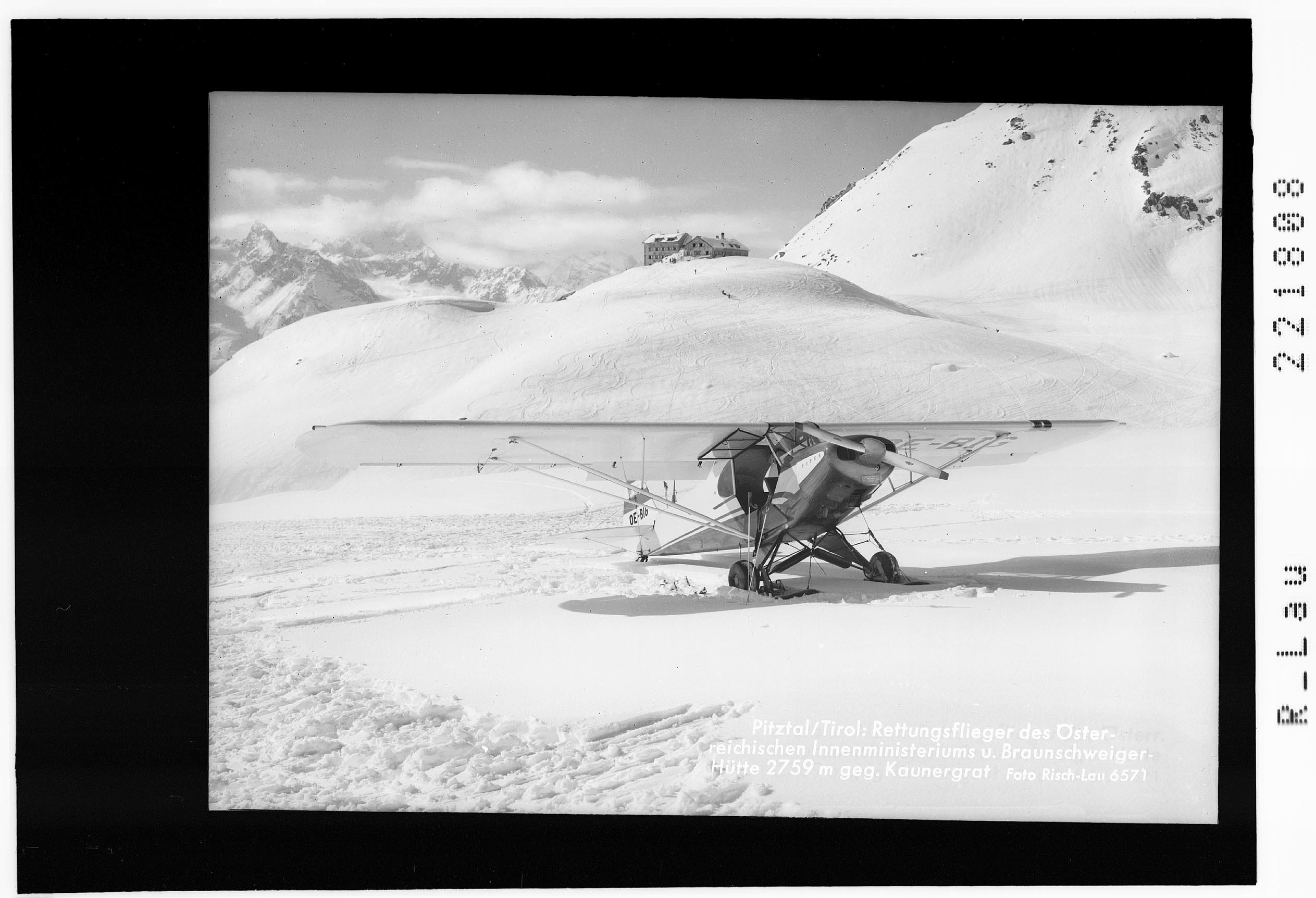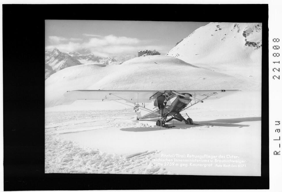 Pitztal / Tirol : Rettungsflieger des Österreichischen Innenministeriums und Braunschweiger Hütte 2759 m gegen Kaunergrat