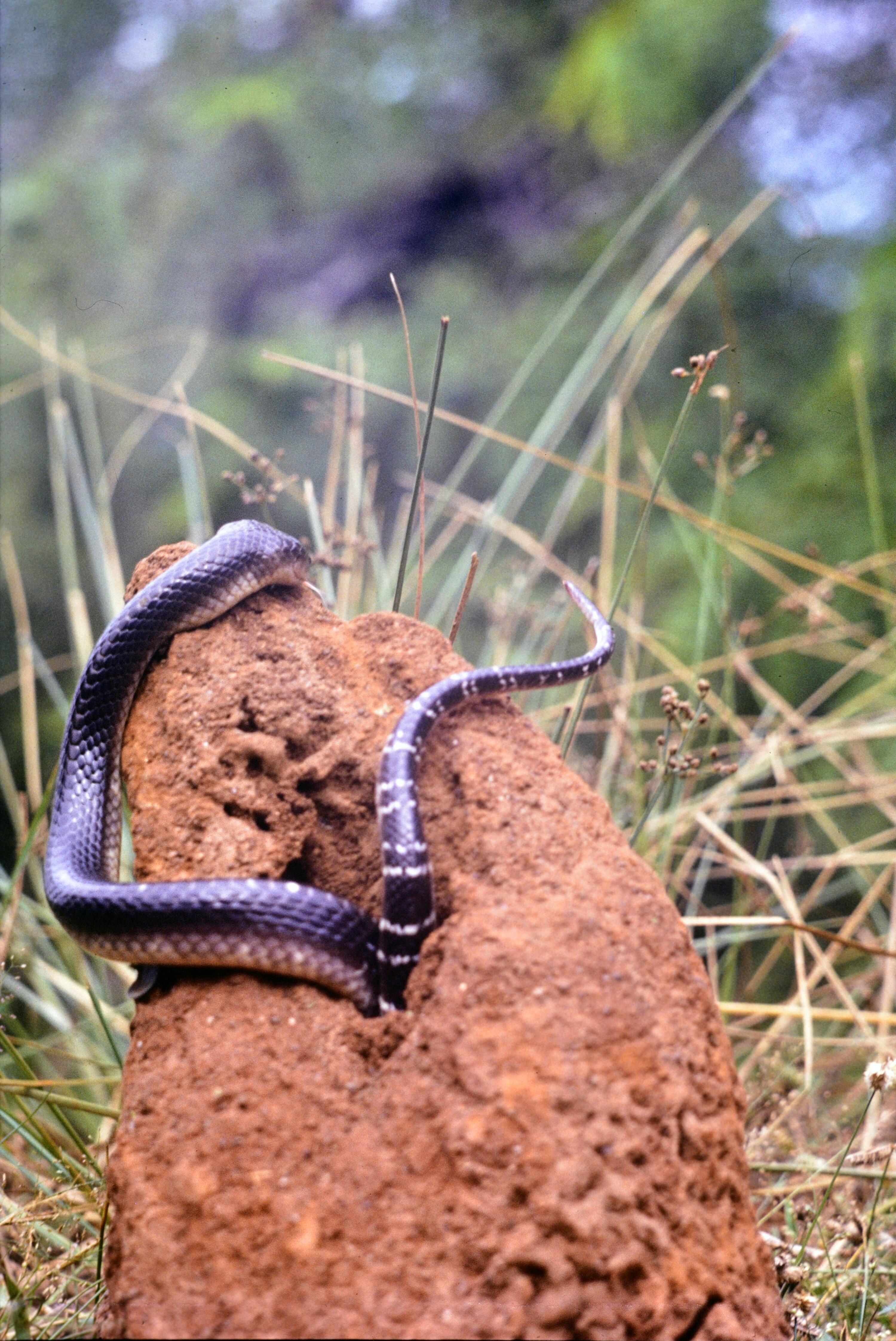 [Gewöhnliche Krait im Termitenhügel]