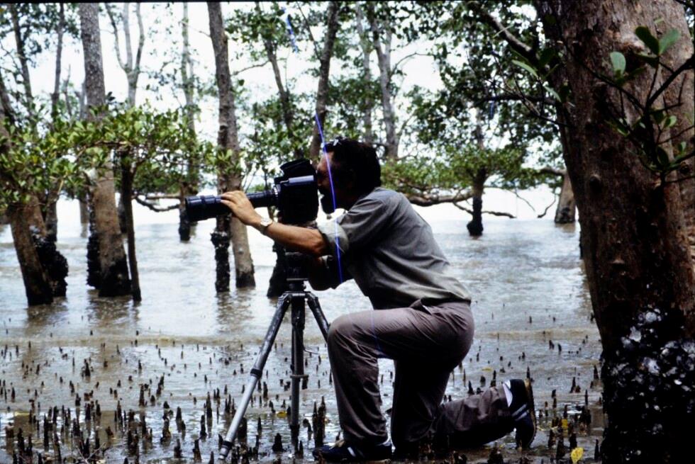 • o:278042: Werner Fend bei Filmaufnahmen unter Moskitonetz