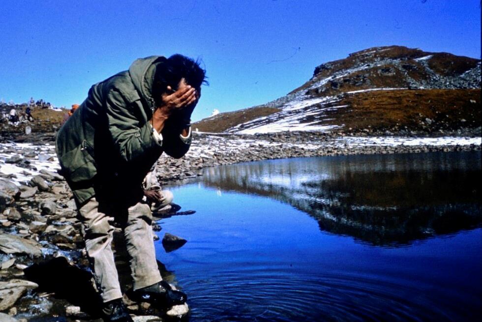 [Werner Fend am 4400m hohen heiligen See, Ziel der Pilger mit den Silbermasken]