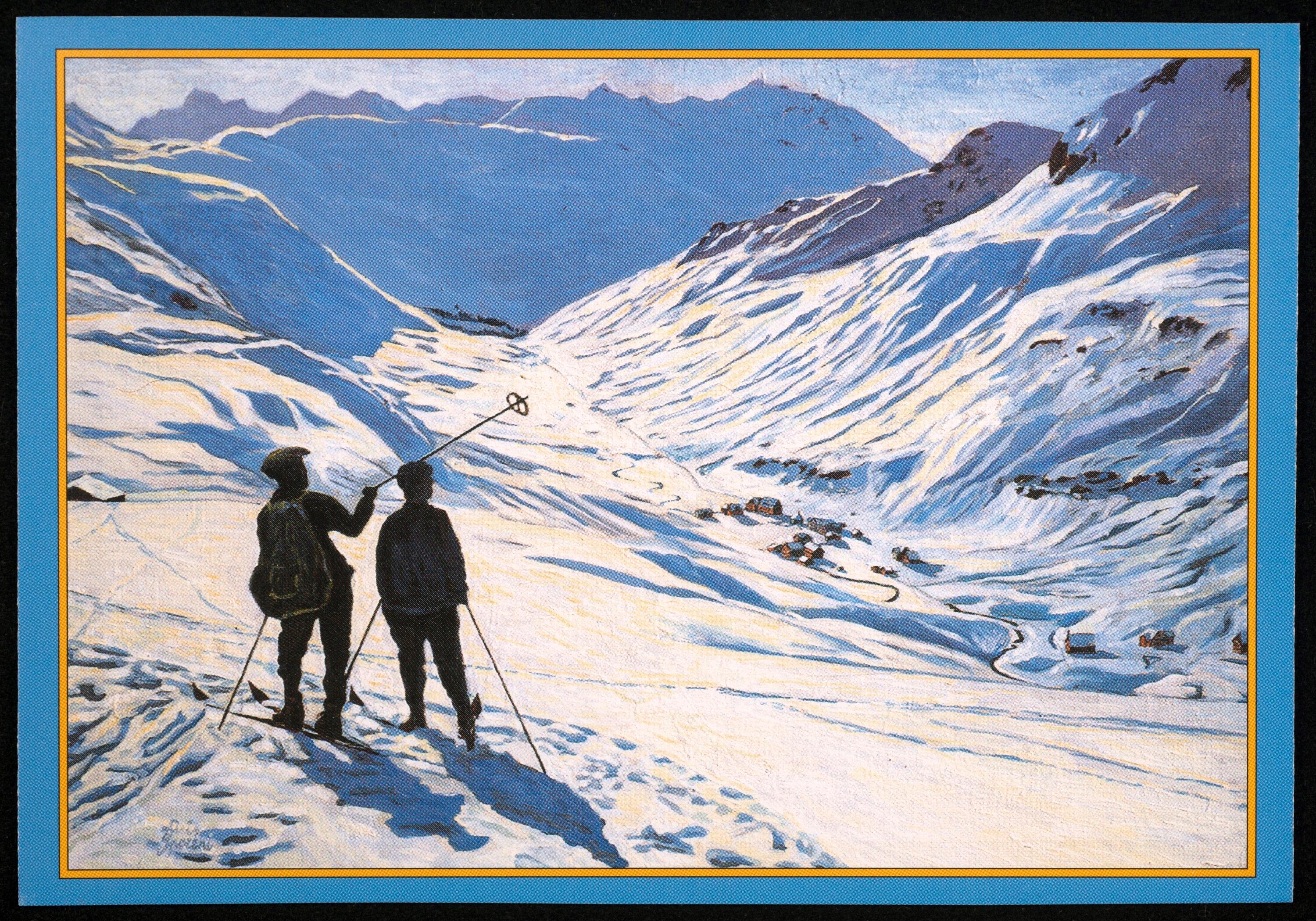 Zürs am Arlberg um 1930 nach einem Ölbild von Alois Sporeni