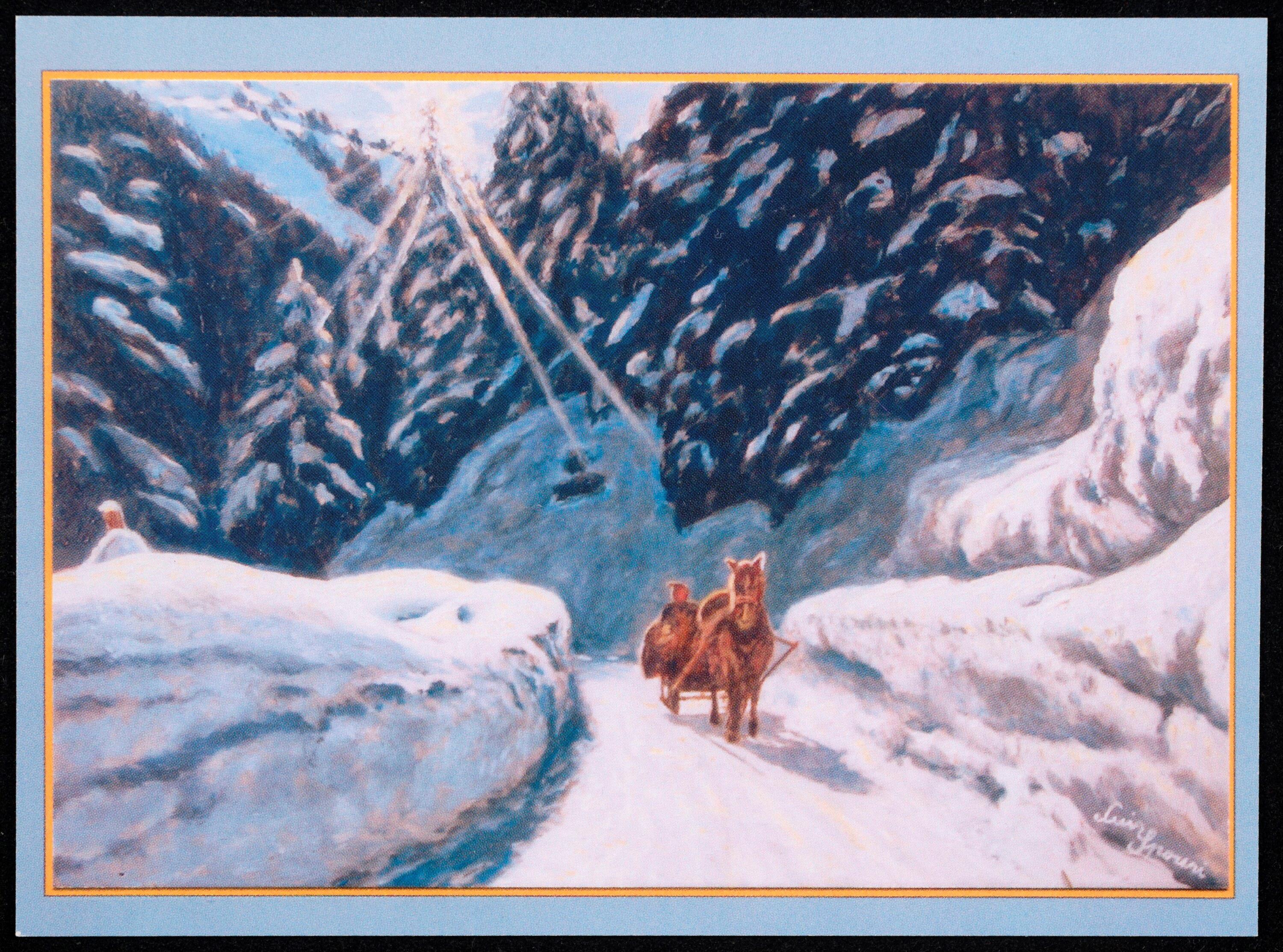 Pferdeschlitten bei Zug am Arlberg nach einem Ölbild von Luis Sporeni