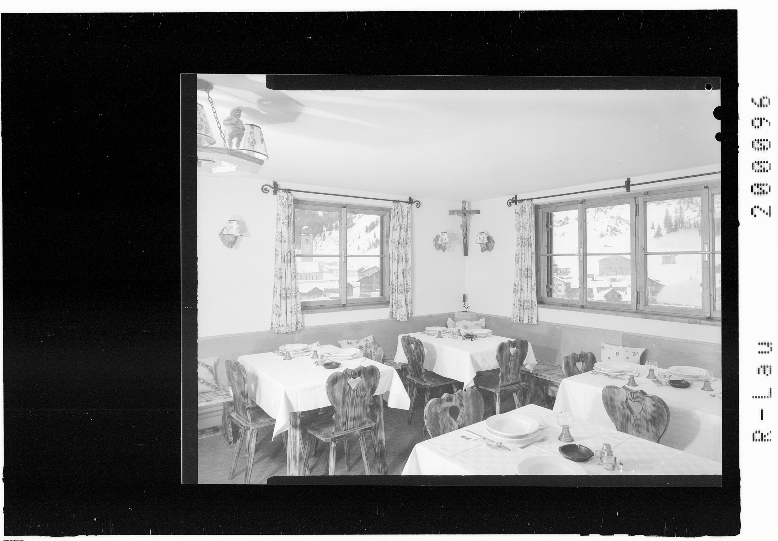 [Speisezimmer in der Pension Madlochblick in Lech am Arlberg]