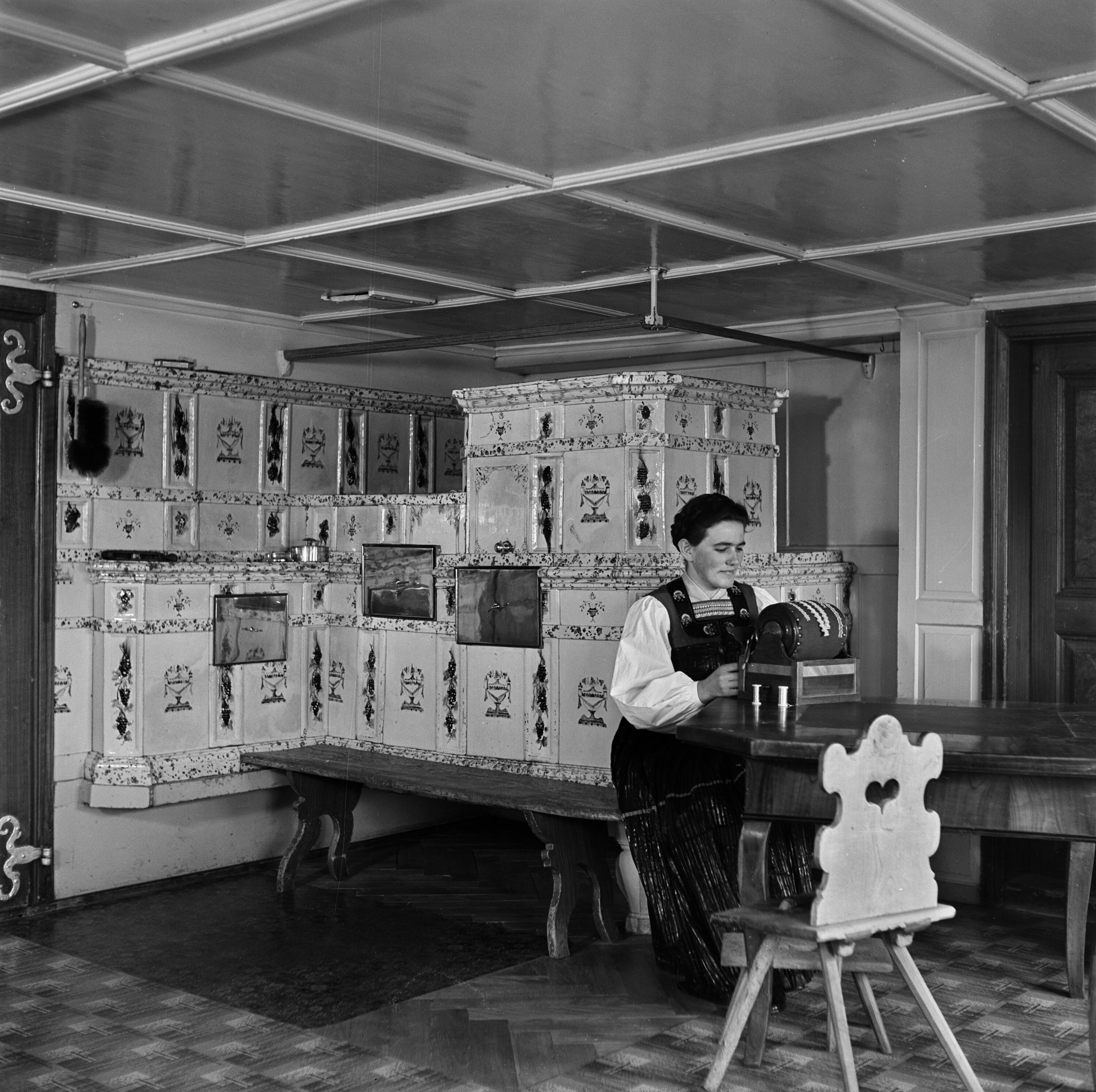 • Stube mit Frau beim Sticken