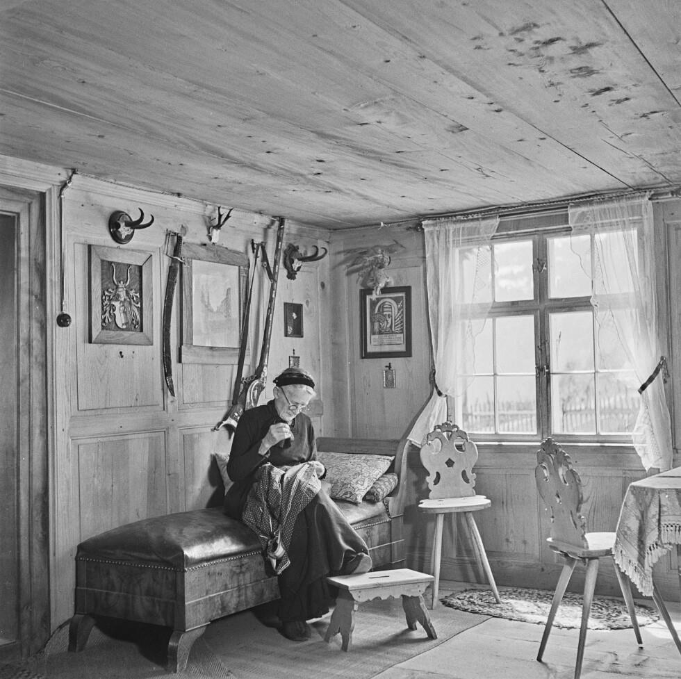 • Frau in der Stube beim Handarbeiten