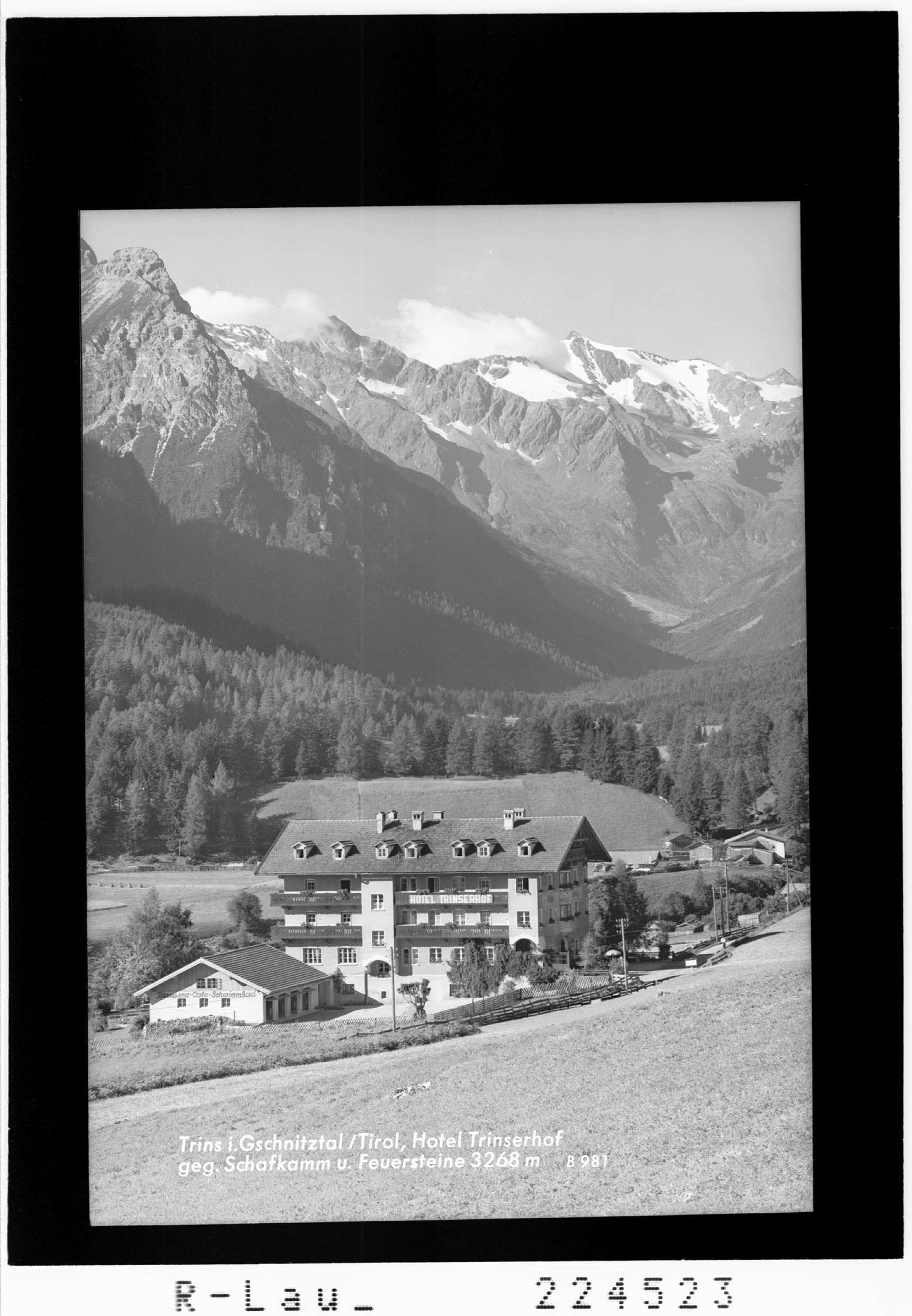 Trins im Gschnitztal / Tirol / Hotel Trinserhof gegen Schafkamm und Feuerstein 3268 m