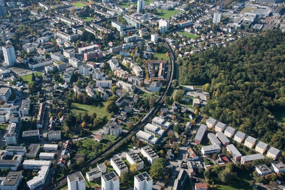 Schrägluftaufnahmen von Gebäuden der Stadt Bregenz, Vorkloster