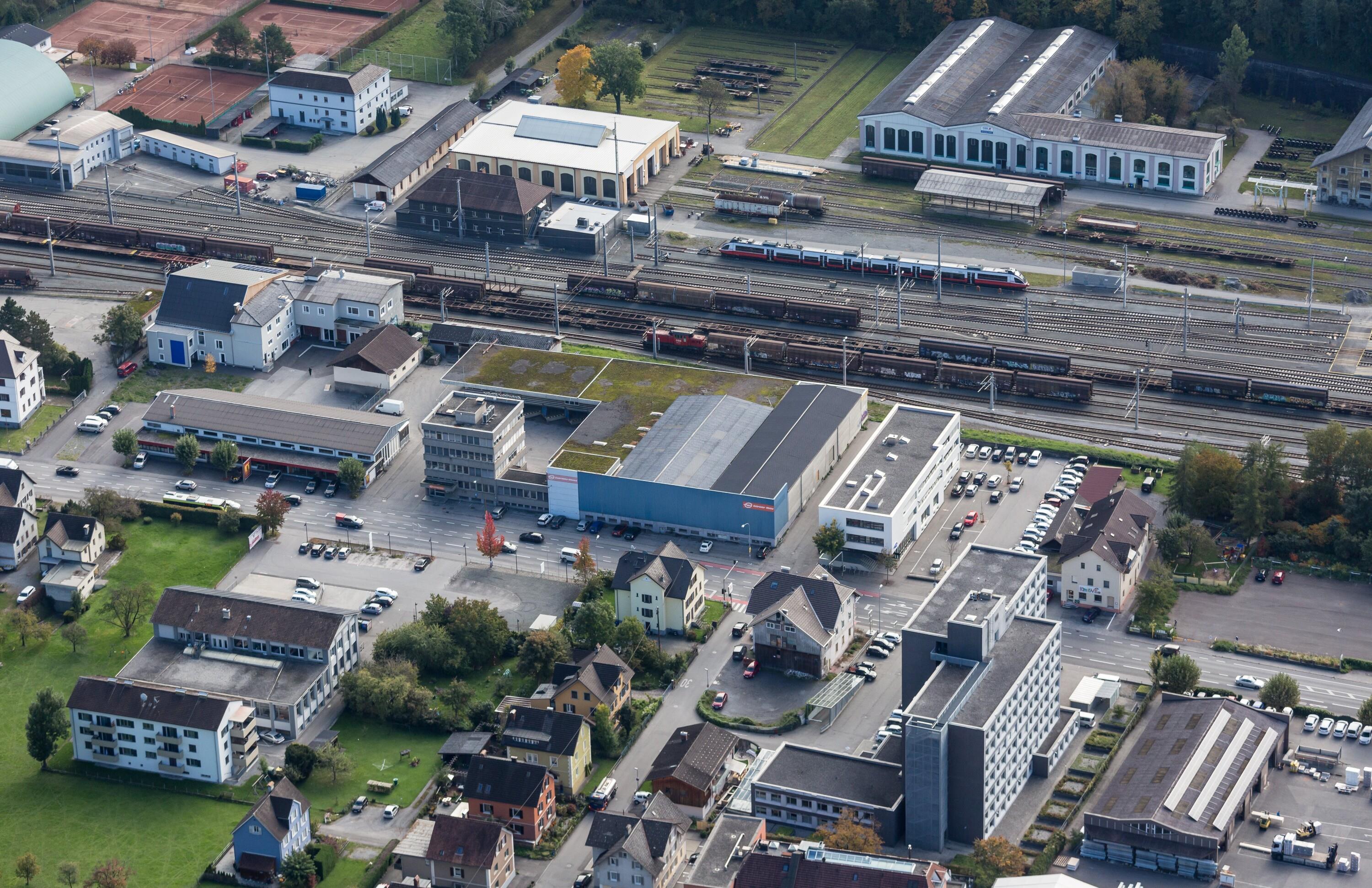 [Feldkirch-Levis, Gebrüder Weiß, Gleisanlagen, Tennisplatz, Finanzamt]