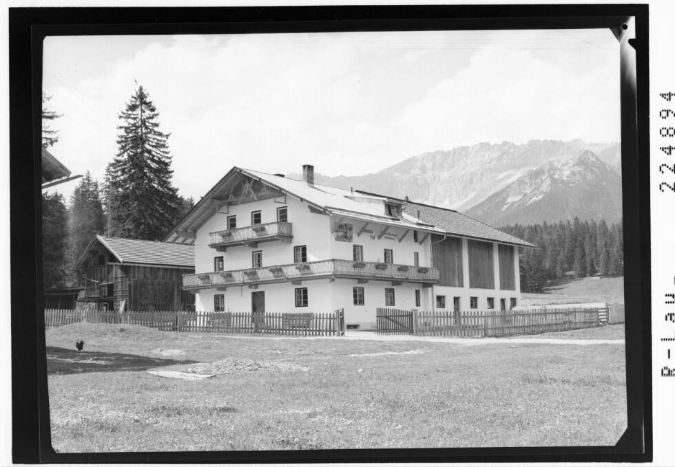 [Leutasch - Moos / Fremdenheim Kössler Hof gegen Hinterreintalschrofen und Teufelsgrat]