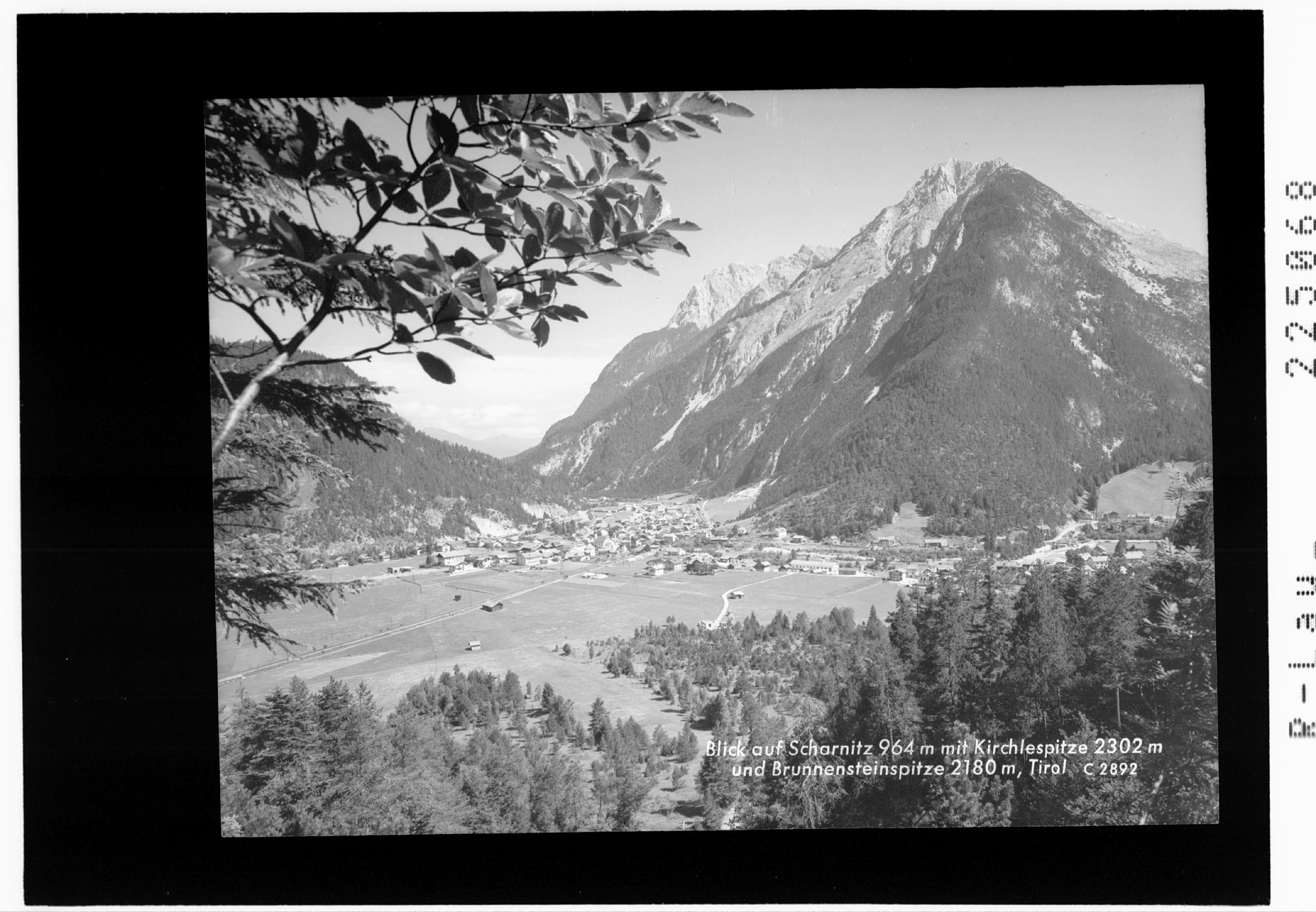 Blick auf Scharnitz 964 m mit Kirchlespitze 2302 m und Brunnensteinspitze 2180 m / Tirol