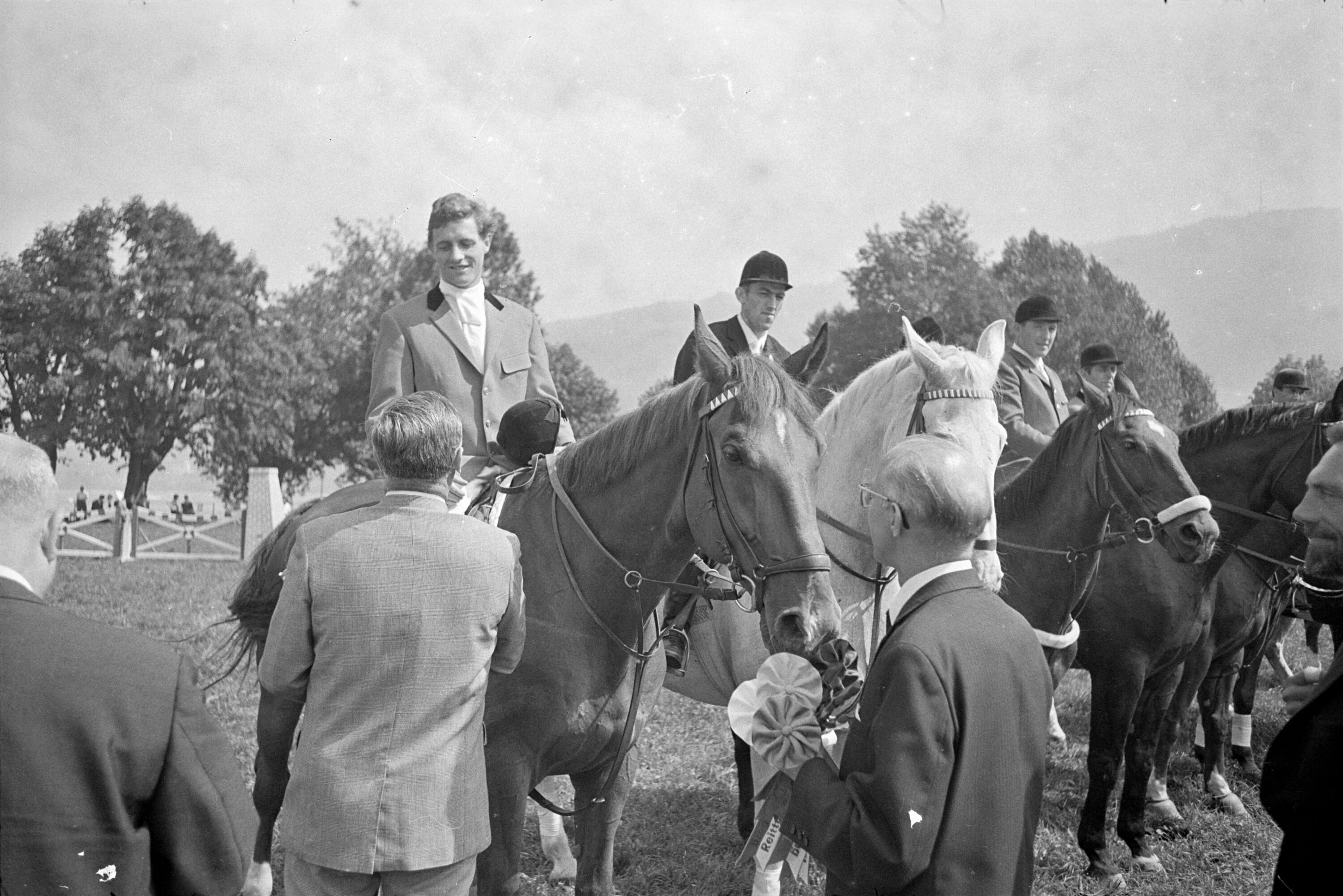 o:298936: v.l.n.r.: Sieger der Springprüfung der Klasse A.: Rudolf Gotthard, Herbert Stieger, Gertraud Grabher
