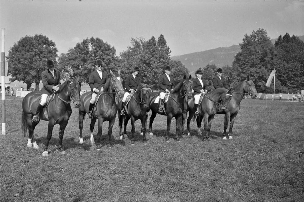 o:298936: v.l.n.r.: Sieger der Springprüfung der Klasse A.: Rudolf Gotthard, Herbert Stieger, Gertraud Grabher
