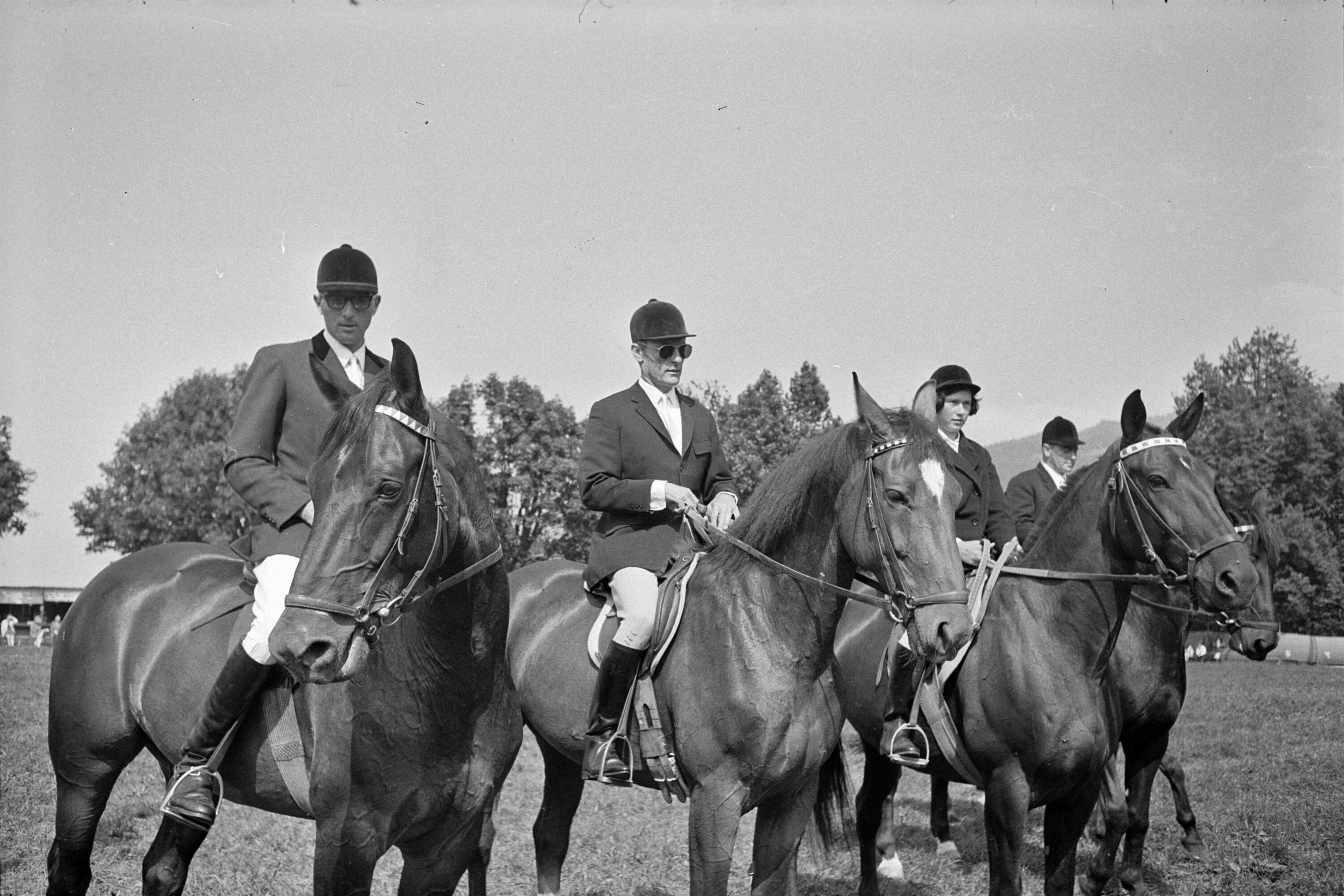 o:298936: v.l.n.r.: Sieger der Springprüfung der Klasse A.: Rudolf Gotthard, Herbert Stieger, Gertraud Grabher
