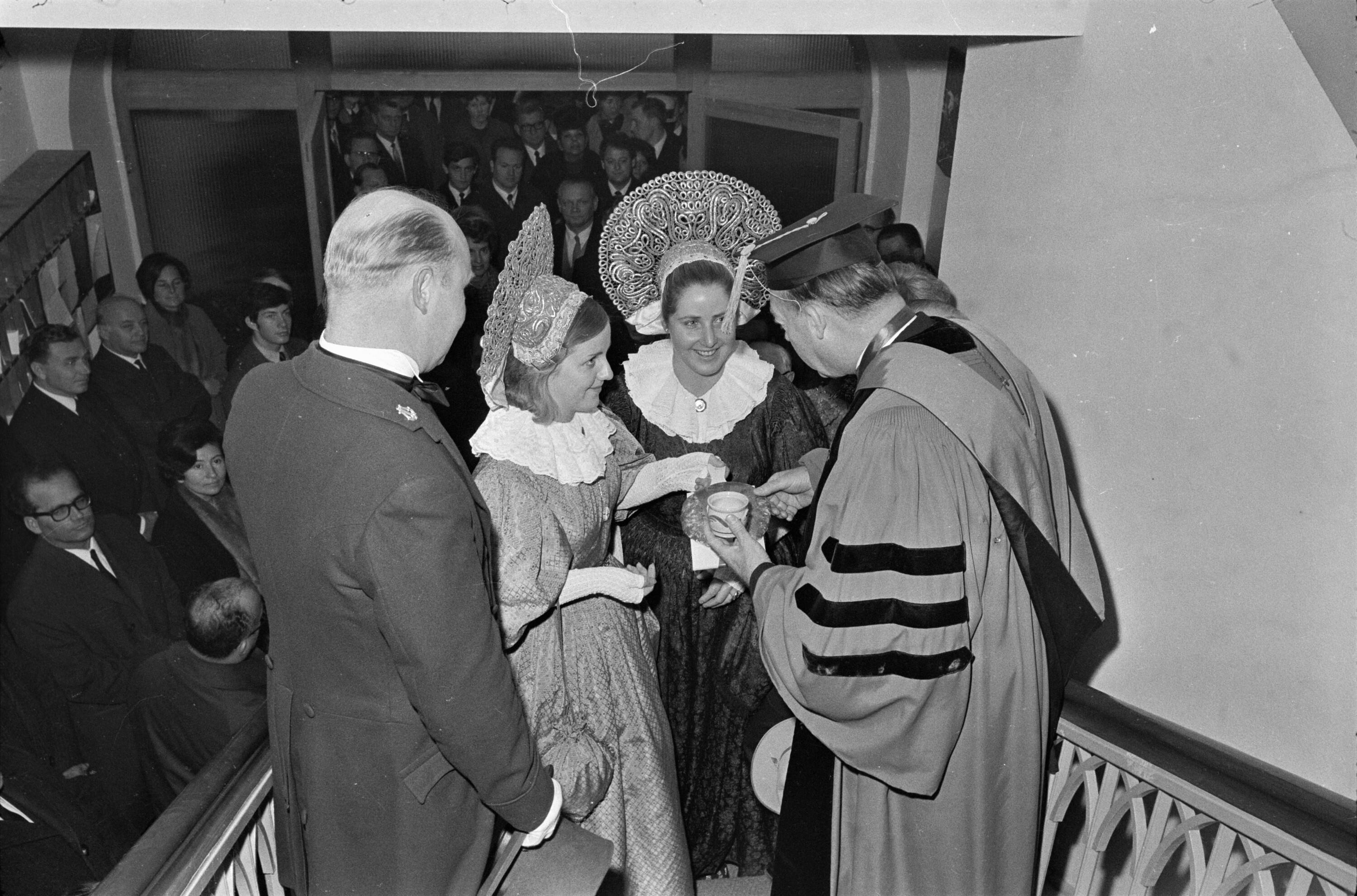 • o:300914: v.l.n.r.: vorderste Reihe: unbekannt, Dekan A. Stern, G. Pinette, Frau Davidson, Präsident Davidson
