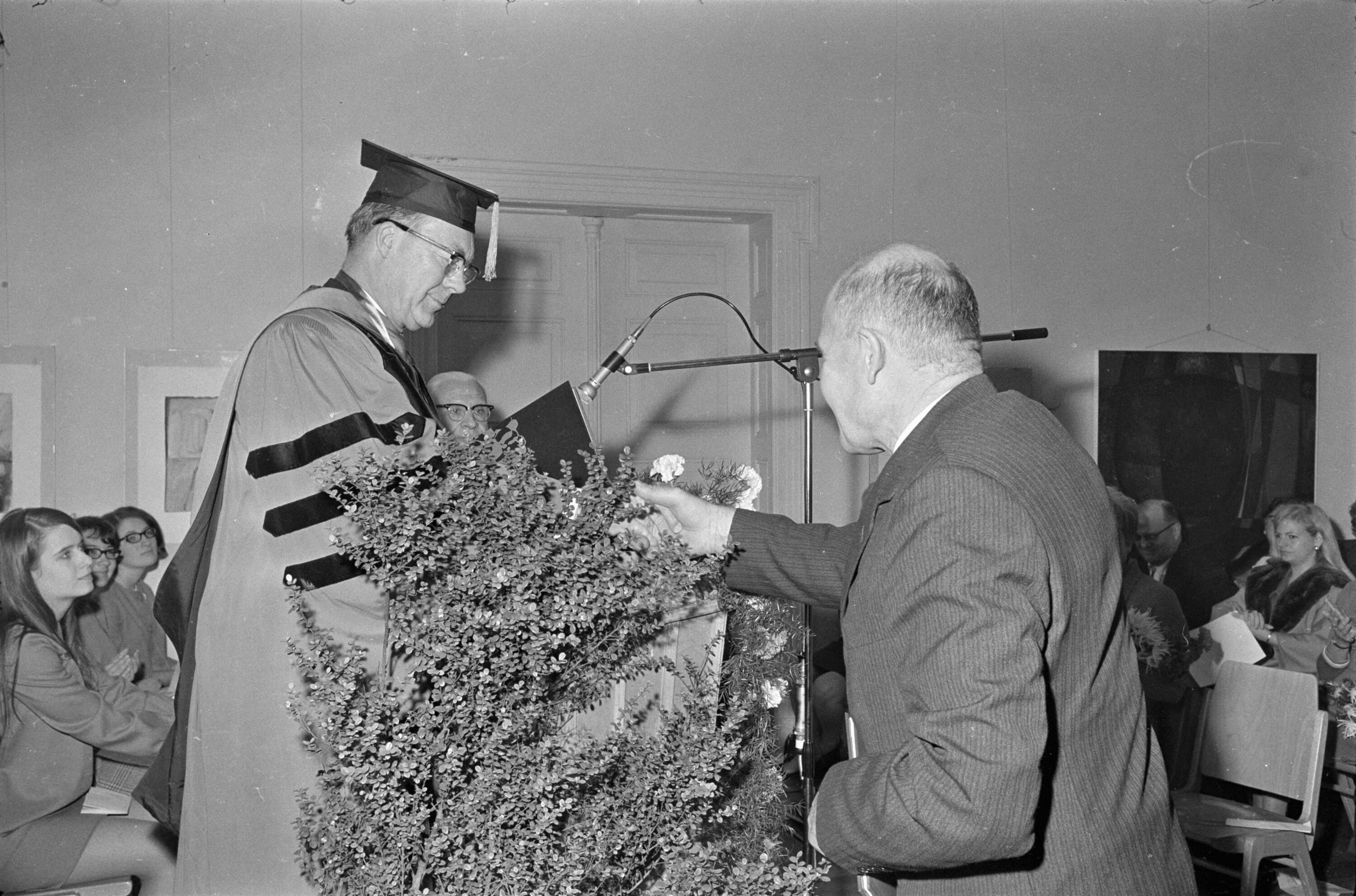 • o:300914: v.l.n.r.: vorderste Reihe: unbekannt, Dekan A. Stern, G. Pinette, Frau Davidson, Präsident Davidson