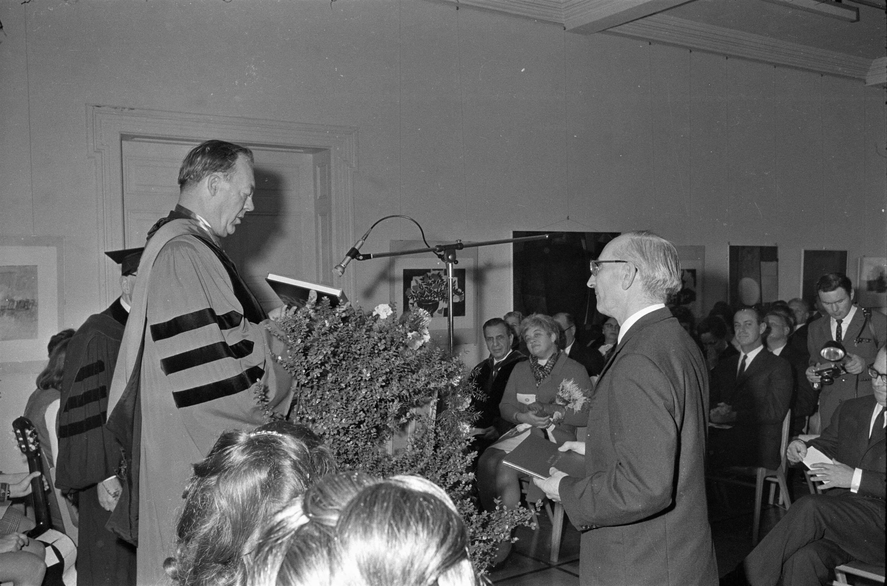 • o:300914: v.l.n.r.: vorderste Reihe: unbekannt, Dekan A. Stern, G. Pinette, Frau Davidson, Präsident Davidson